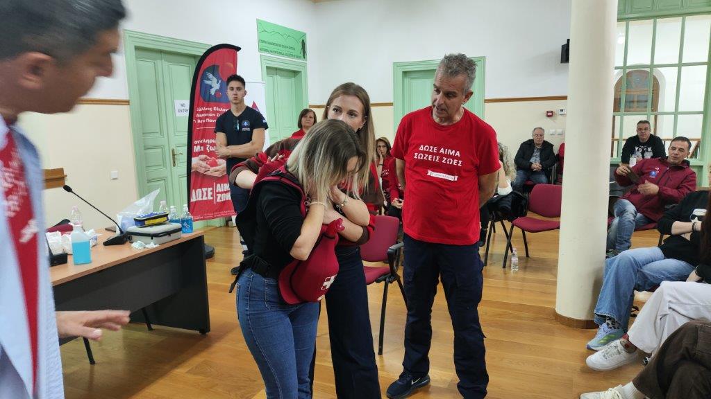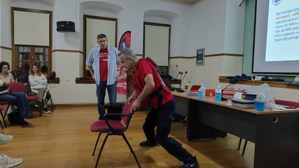 Οι εκπαιδευτές–διασώστες του ΕΚΑΒ Κοζάνης, Γεώργιος Γκαραλιός, Αντώνης Τότσκα και Κωνσταντίνος Πολύζος, καθοδήγησαν βήμα-βήμα τους παρευρισκόμενους, δίνοντας πρακτικές οδηγίες που μπορούν να αποδειχθούν καθοριστικές σε μια επείγουσα κατάσταση.