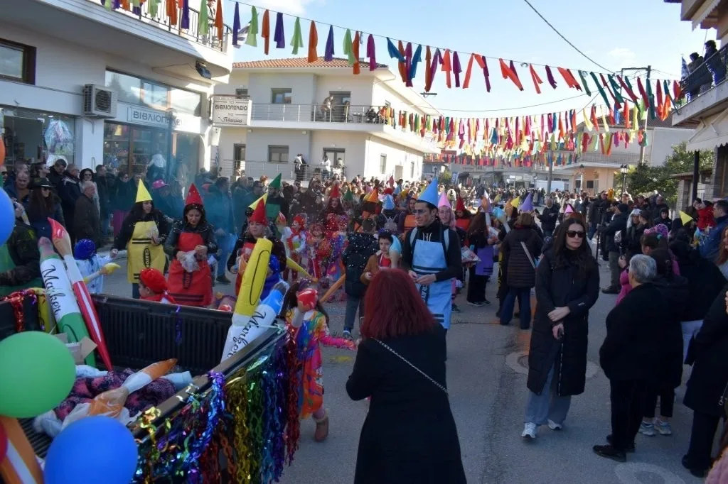 Μικροί και μεγάλοι καρναβαλιστές, συνοδευόμενοι από εντυπωσιακά στολισμένα άρματα, μετέτρεψαν τον κεντρικό δρόμο σε μια πολύχρωμη γιορτή γεμάτη μουσική, ρυθμό και ζωντάνια, προσφέροντας μοναδικές εικόνες που έκαναν την παρέλαση αξέχαστη.