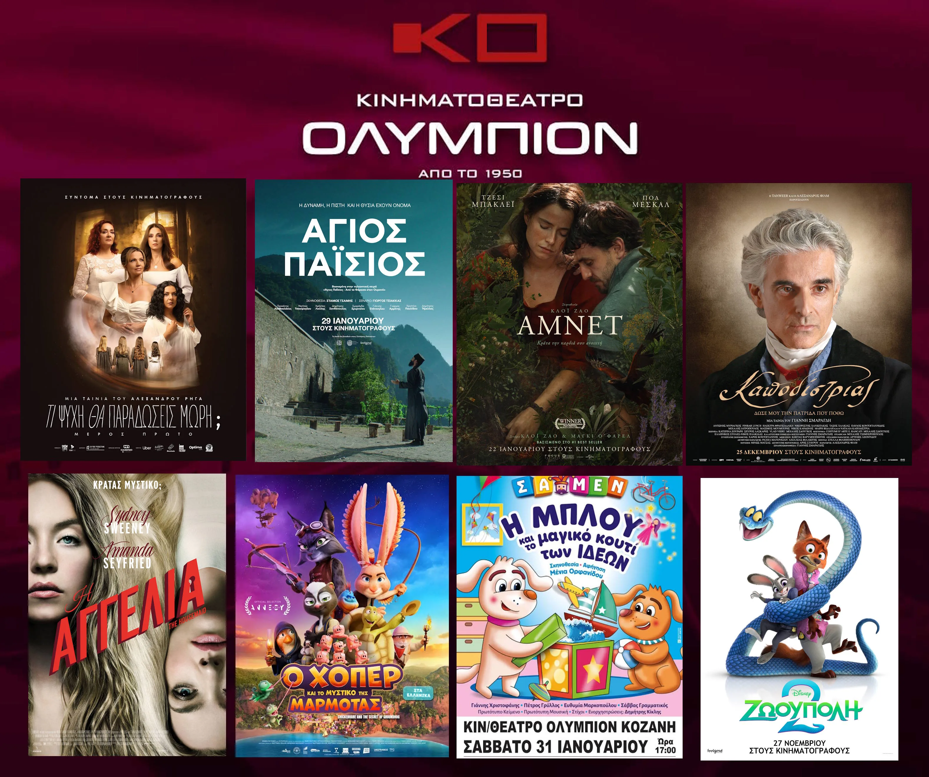Για το πρόγραμμα του κιν/φου επισκεφτείτε την ιστοσελίδα μας: www.cineolympion.gr