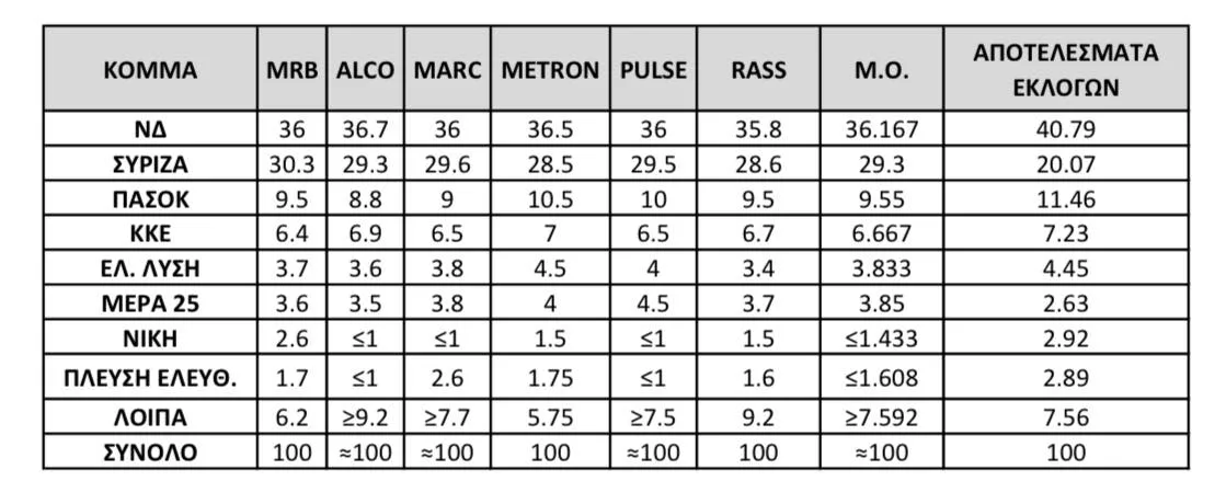 Όπως σημειώνει, τα τελευταία χρόνια παρατηρείται σημαντική απόκλιση ανάμεσα στις δημοσκοπικές εκτιμήσεις και την πραγματικότητα, με χαρακτηριστικό παράδειγμα –όπως αναφέρει– τις εθνικές εκλογές του Μαΐου 2023, όπου οι προβλέψεις γνωστών εταιρειών δεν επιβεβαιώθηκαν από το τελικό αποτέλεσμα. Ο ίδιος παραθέτει συγκριτικά στοιχεία με τις εκτιμήσεις έξι δημοσκοπικών εταιρειών λίγες ημέρες πριν τις εκλογές και το αποτέλεσμα που προέκυψε στην κάλπη.