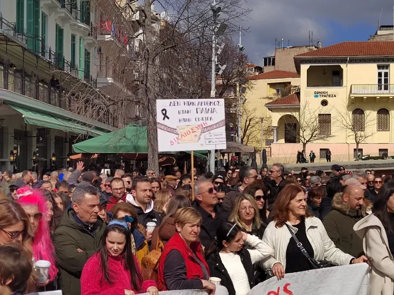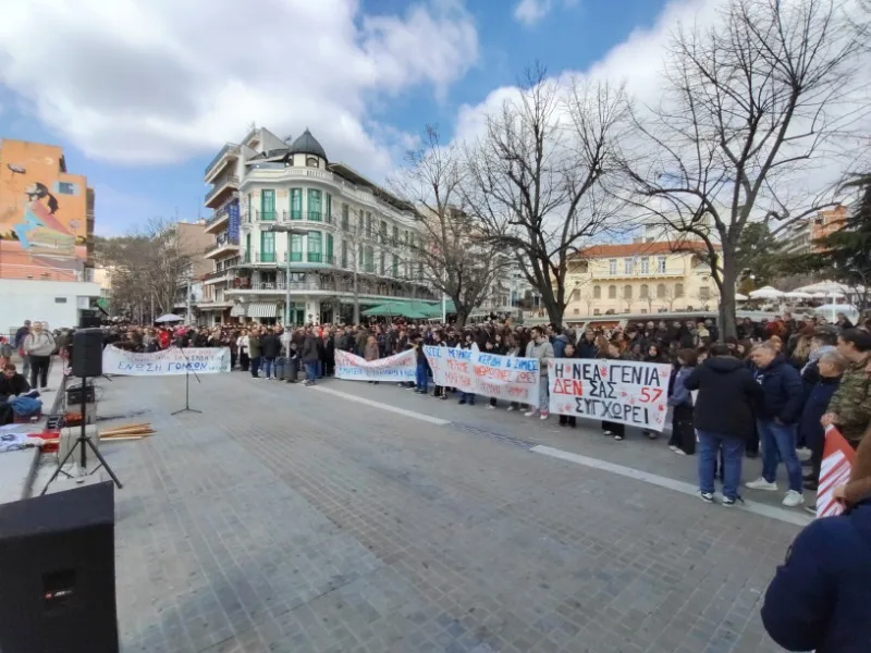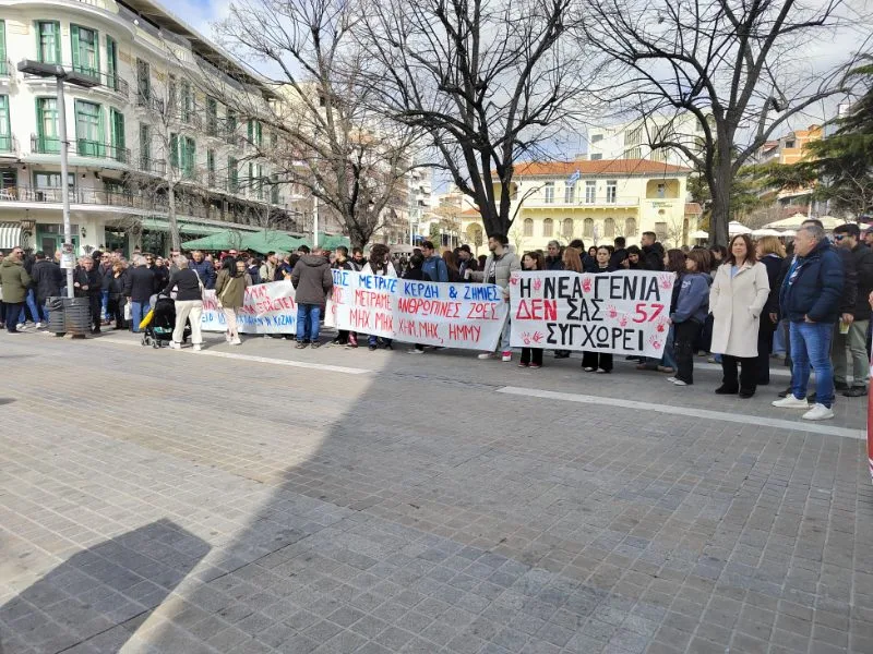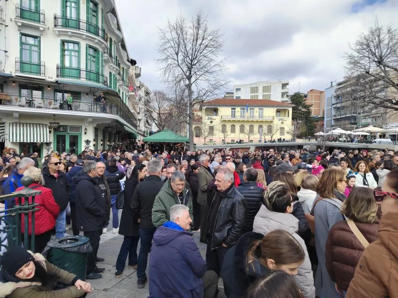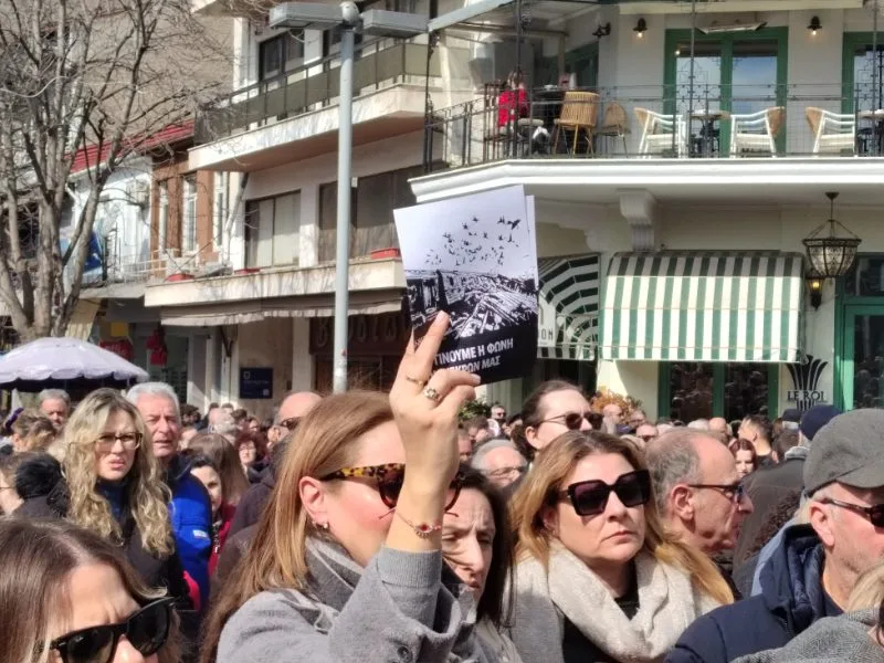 Άνθρωποι όλων των ηλικιών βρέθηκαν στην κεντρική πλατεία της Κοζάνης, κρατώντας πανό και πλακάτ, στέλνοντας μήνυμα μνήμης, δικαιοσύνης και ευθύνης.