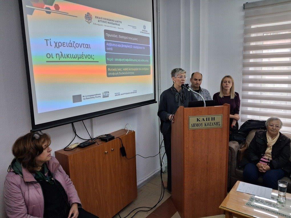 Στην εκδήλωση συμμετείχαν οι γιατροί του Ενιαίου Κοινωνικού Δικτύου Δυτικής Μακεδονίας, Ματίνα Κουντουρά και Μαρία Μόσχου, καθώς και ο γυμναστής Δημήτρης Βαλταδώρος από το Τμήμα Γυμναστικής των ΚΑΠΗ. Οι ομιλητές ανέλυσαν πρακτικούς τρόπους διατήρησης της καλής φυσικής κατάστασης, τόνισαν τη σημασία της σωστής διατροφής και μίλησαν για την αξία της πρόληψης σε κάθε ηλικία.
