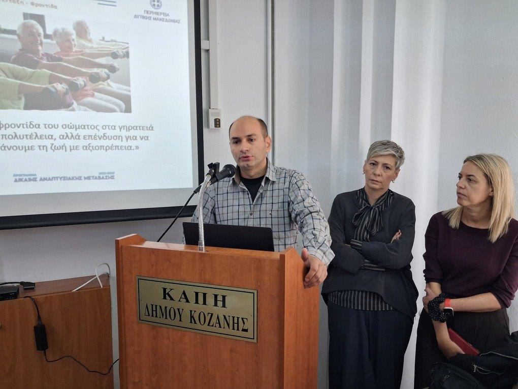 Το Α΄ ΚΑΠΗ Κοζάνης φιλοξένησε την Τετάρτη 15 Οκτωβρίου 2025 μια ενημερωτική εκδήλωση που επικεντρώθηκε στη σωματική άσκηση, τη σωστή διατροφή και τη φροντίδα του μυοσκελετικού συστήματος. Η συμμετοχή των μελών και των δημοτών ήταν ιδιαίτερα ικανοποιητική, δείχνοντας το ενδιαφέρον της τοπικής κοινωνίας για θέματα που αφορούν την υγεία και την πρόληψη.