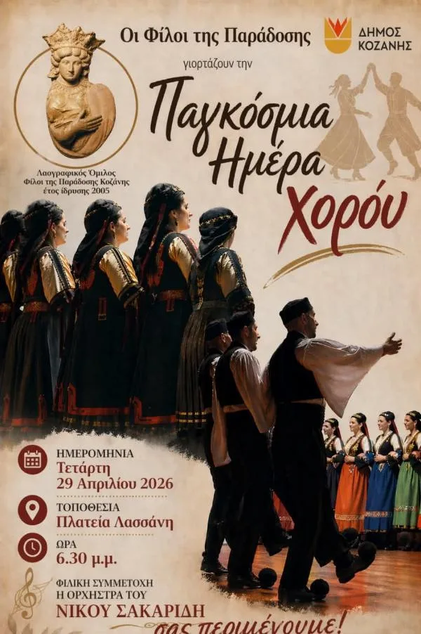Ο Λαογραφικός Όμιλος “Φίλοι της παράδοσης” Κοζάνης, τιμώντας την Παγκόσμια Ημέρα Χορού, διοργανώνουν εκδήλωση προβάλλοντας το χορό ως μέσο που ενώνει ανθρώπους και πολιτισμούς.
