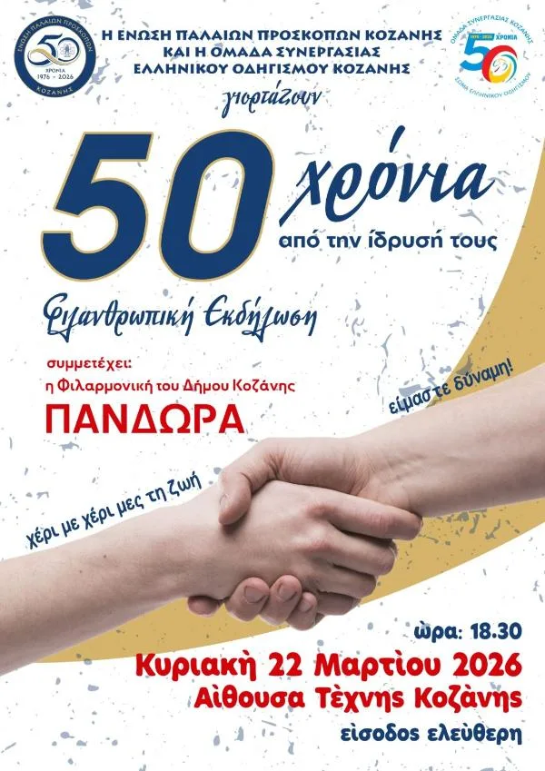 Σας περιμένουμε την Κυριακή 22 Μαρτίου 2026 και ώρα 18:30 στην Αίθουσα Τέχνης Κοζάνης.