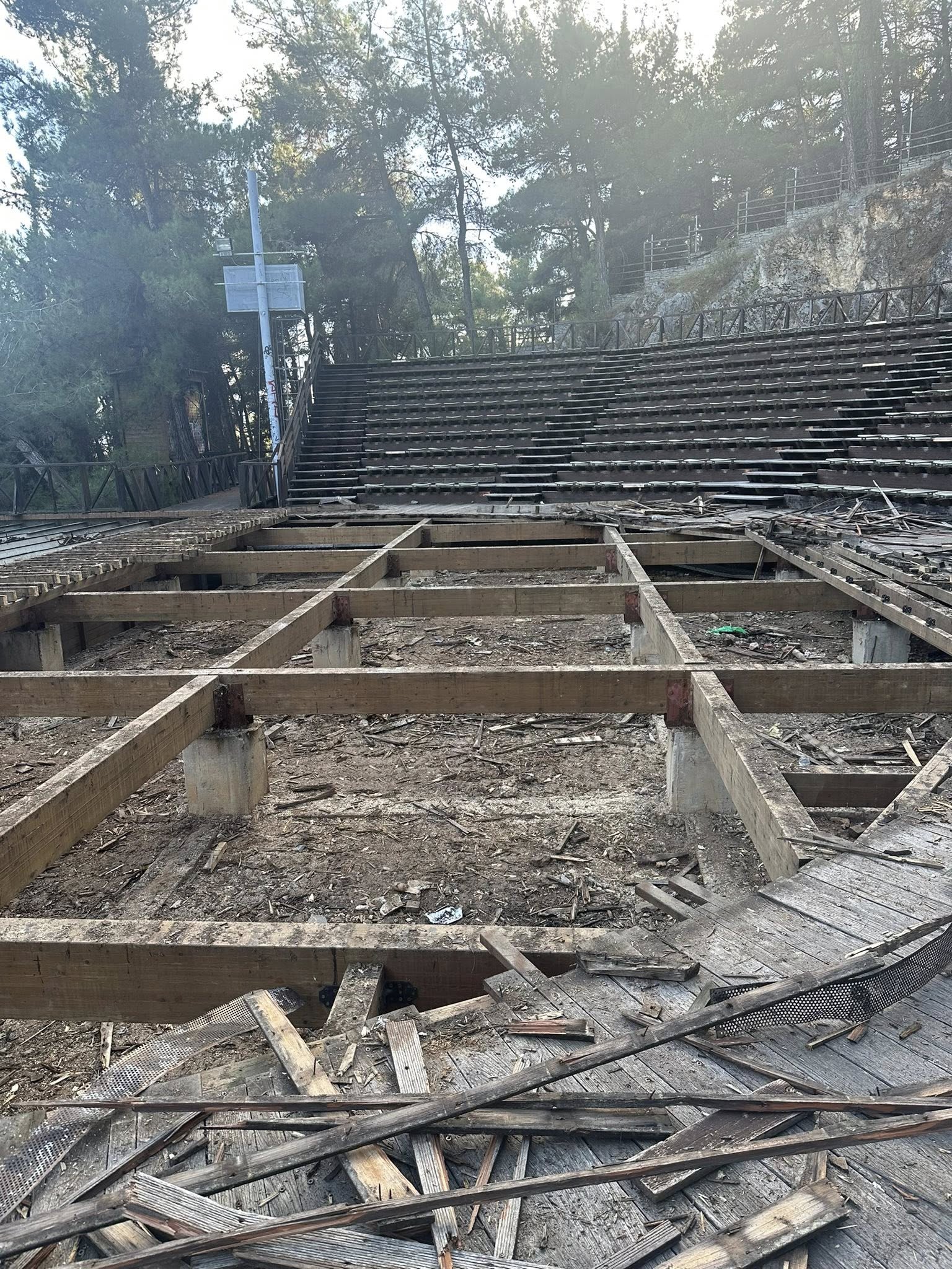 Στο πλαίσιο της πρώτης φάσης των εργασιών, θα πραγματοποιηθούν επισκευές στην κεντρική σκηνή — το σημείο όπου πραγματοποιούνται οι παραστάσεις — ώστε να διασφαλιστεί η ασφάλεια και η λειτουργικότητα του χώρου.