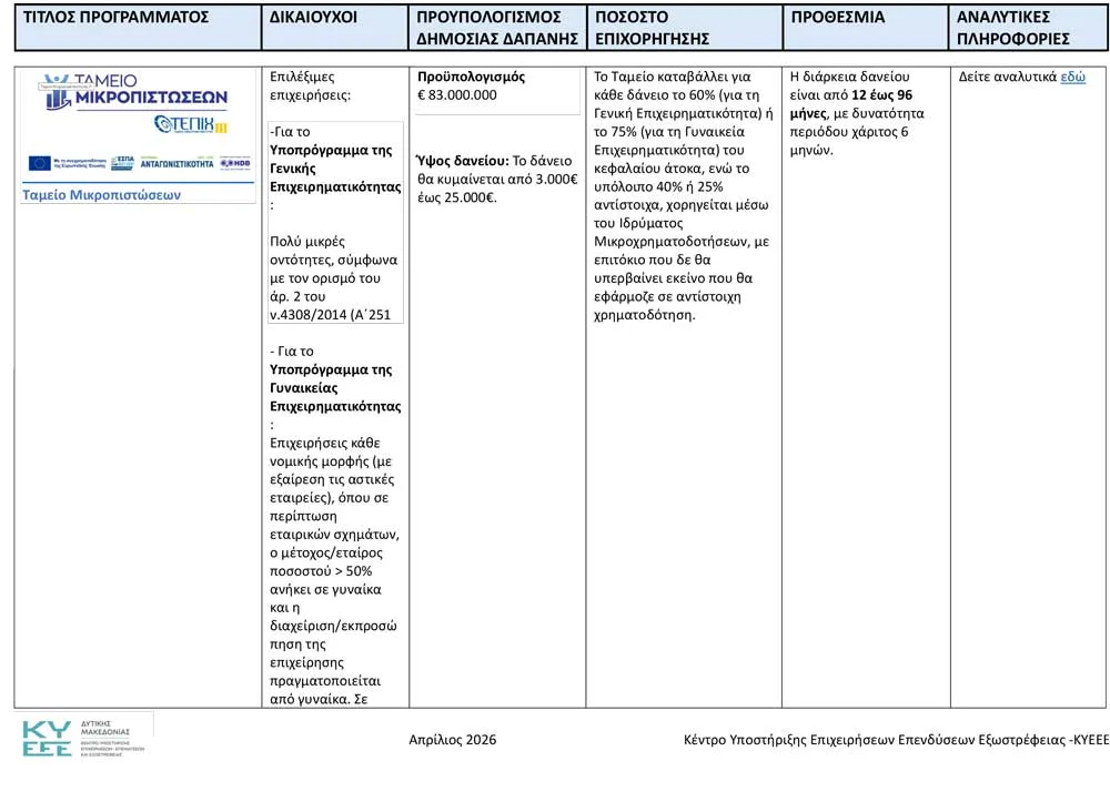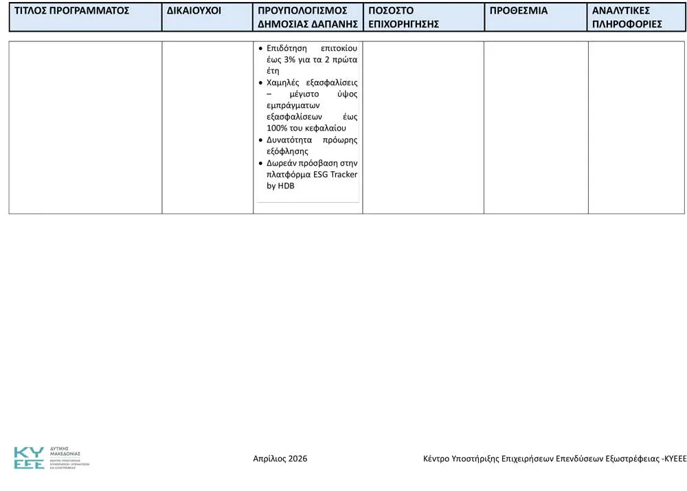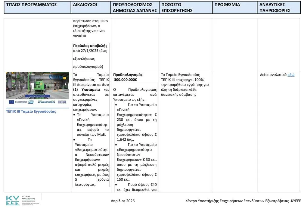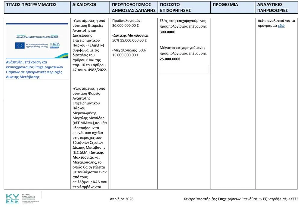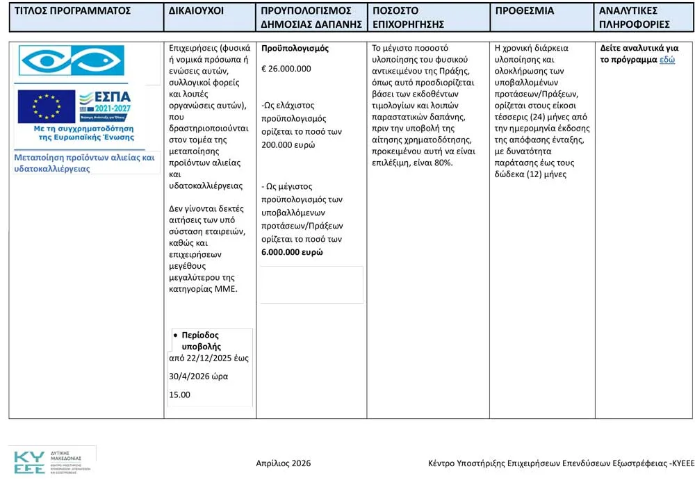 Το Κέντρο Υποστήριξης Επιχειρήσεων, Επενδύσεων και Εξωστρέφειας Δυτικής Μακεδονίας ανακοινώνει όλα τα ενεργά προγράμματα, για τον Απρίλιο του 2026.