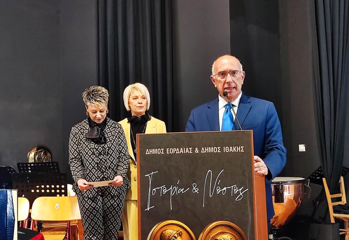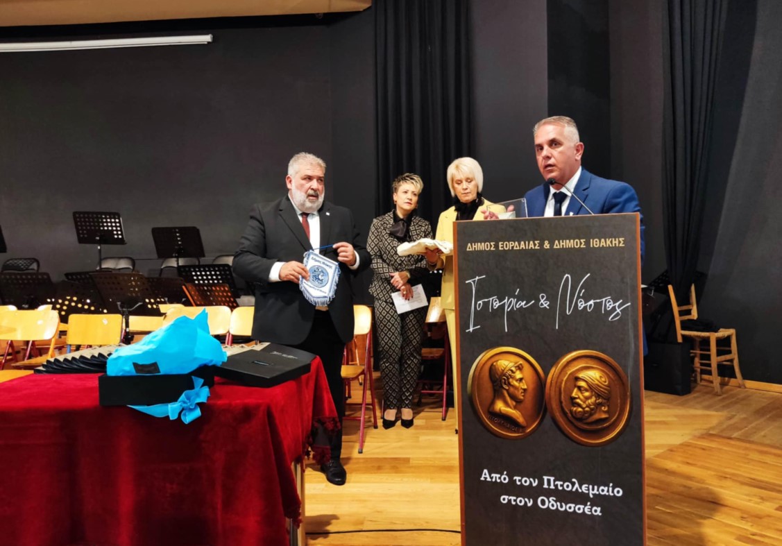 Η λαμπρή τελετή πραγματοποιήθηκε με τη λήξη της παρέλασης προ των επισήμων, στο αμφιθέατρο του Μουσικού Σχολείου Πτολεμαΐδας. Η αδελφοποίηση επισφραγίζει τους δεσμούς φιλίας και πολιτισμού, ενώνοντας την Εορδαία με την Ιθάκη, σε κοινό όραμα συνεργασίας και προόδου.