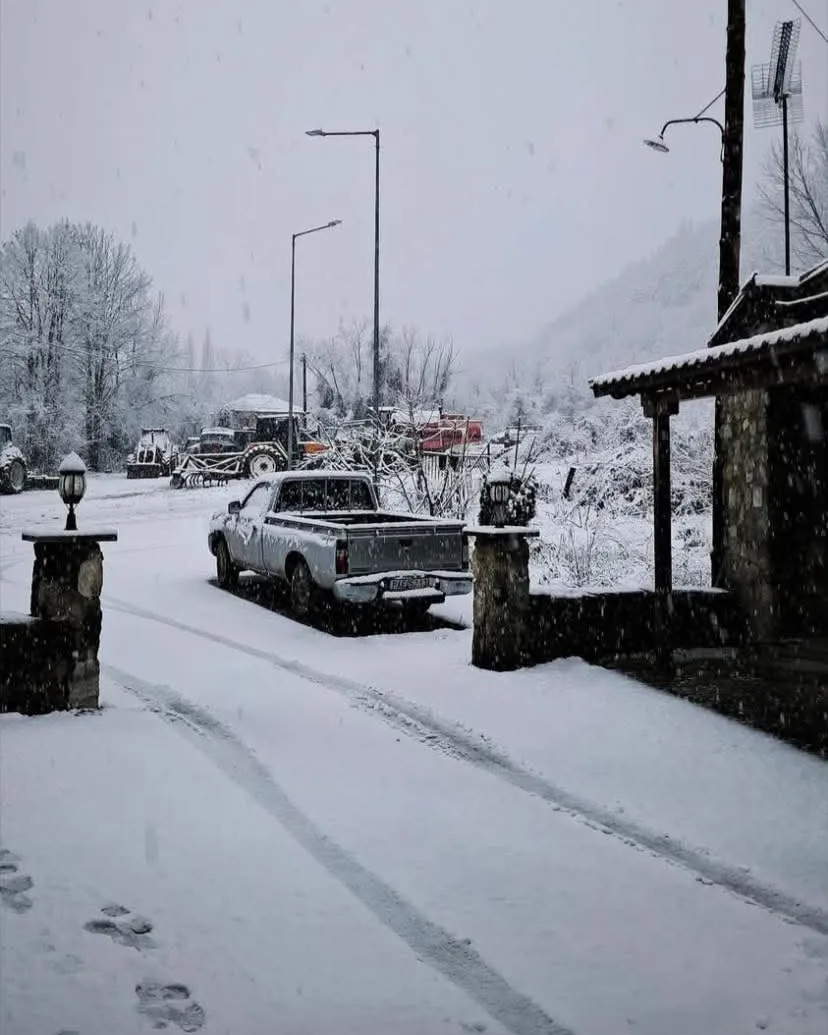 Σε λευκό τοπίο ξύπνησαν σήμερα Τρίτη 17/2οι κάτοικοι στο Ανταρτικό Φλώρινας αφού η πυκνή χιονόπτωση έστρωσε το χιόνι στο χωριό.