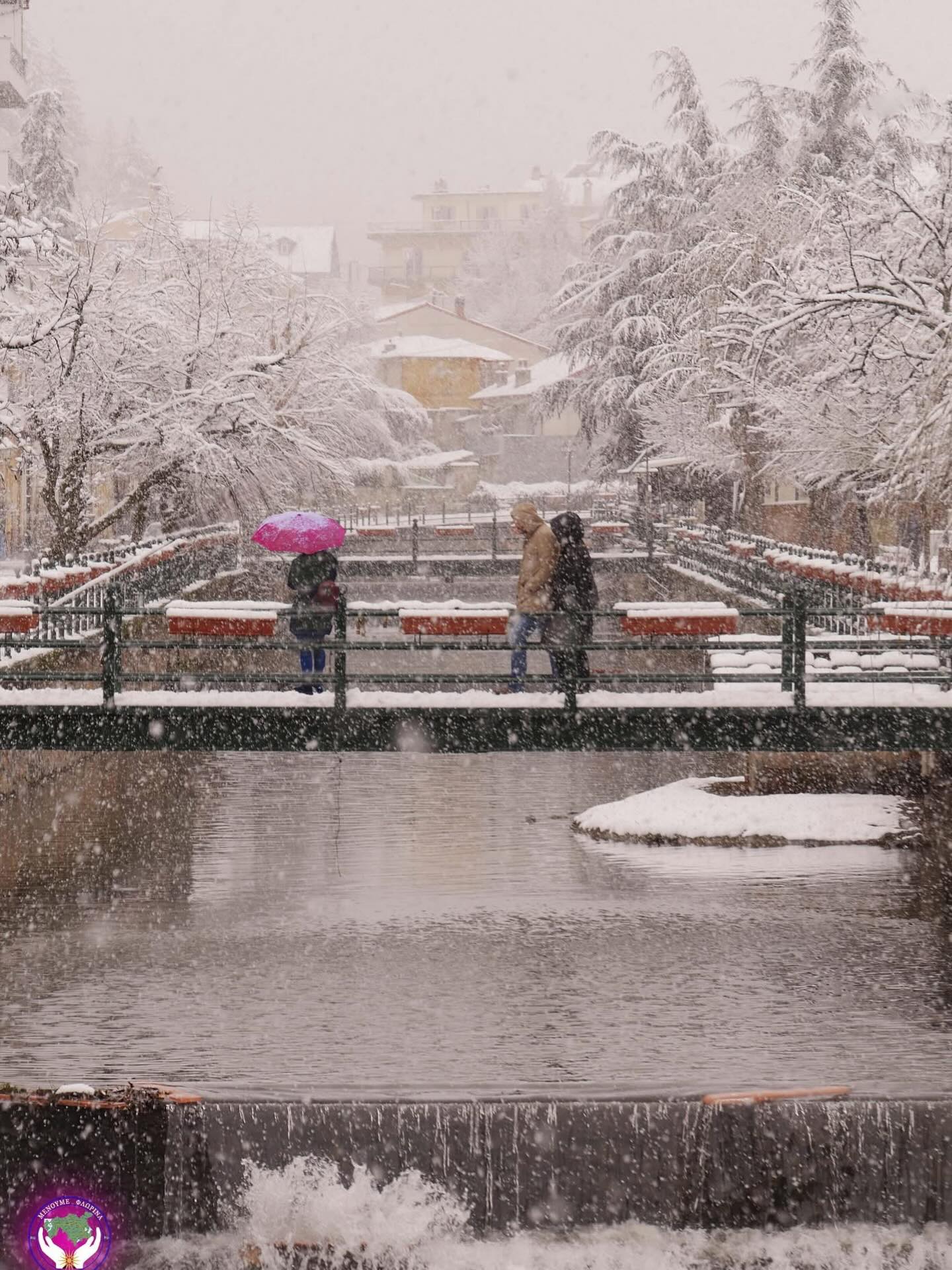 Μια φωτογραφία από το μαγευτικό τοπίο της χιονισμένης Φλώρινας στον ποταμό Σακουλέβα, ανάρτησε το Forecast Weather Greece στο Facebook την Τετάρτη 21/1. Κατά τη διάρκεια πυκνής χιονόπτωσης φαίνεται ότι πολίτες απολαμβάνουν το τοπίο από τη γέφυρα.