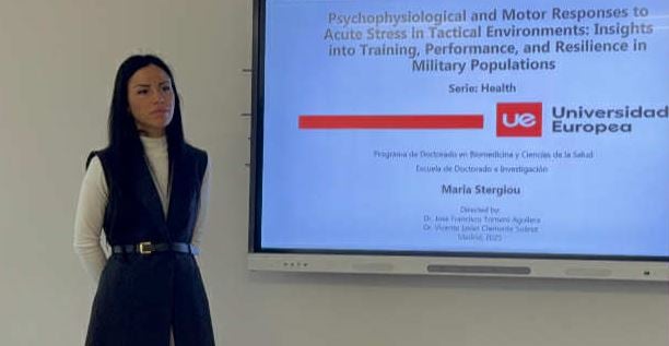 “Το αντικείμενο ήταν το ψυχοσωματικό στρες και πώς επηρεάζει την απόδοση σε όλα τα επίπεδα. Γινόταν σε συνεργασία με τις ισπανικές ένοπλες δυνάμεις και εγώ άλλο που δεν ήθελα, γιατί συνδύαζε τα δύο παιδικά μου όνειρα: Να ασχοληθώ ή με τον αθλητισμό ή με τις στρατιωτικές σχολές”, αναφέρει. Υπέγραψε εμπιστευτικά συμβόλαια και ξεκίνησε το ερευνητικό της αντικείμενο σε αεροπορική βάση στην Τορεχόν.
