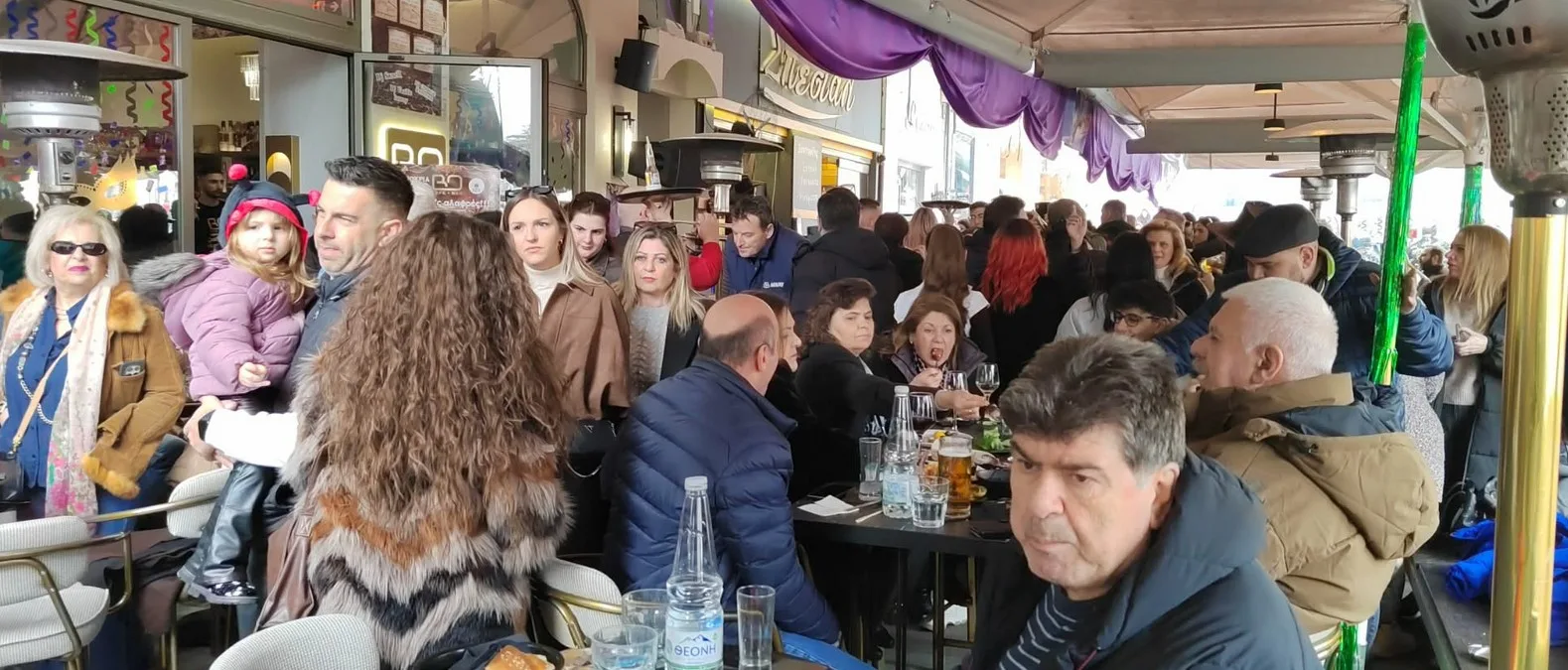Δεν έλειψαν και οι αποκριάτικες στολές, με αρκετούς να επιλέγουν να ντυθούν και να μπουν από νωρίς στο κλίμα των ημερών, ενώ άλλοι προτίμησαν να γιορτάσουν πιο χαλαρά, με την παρέα και το τραπέζι τους.