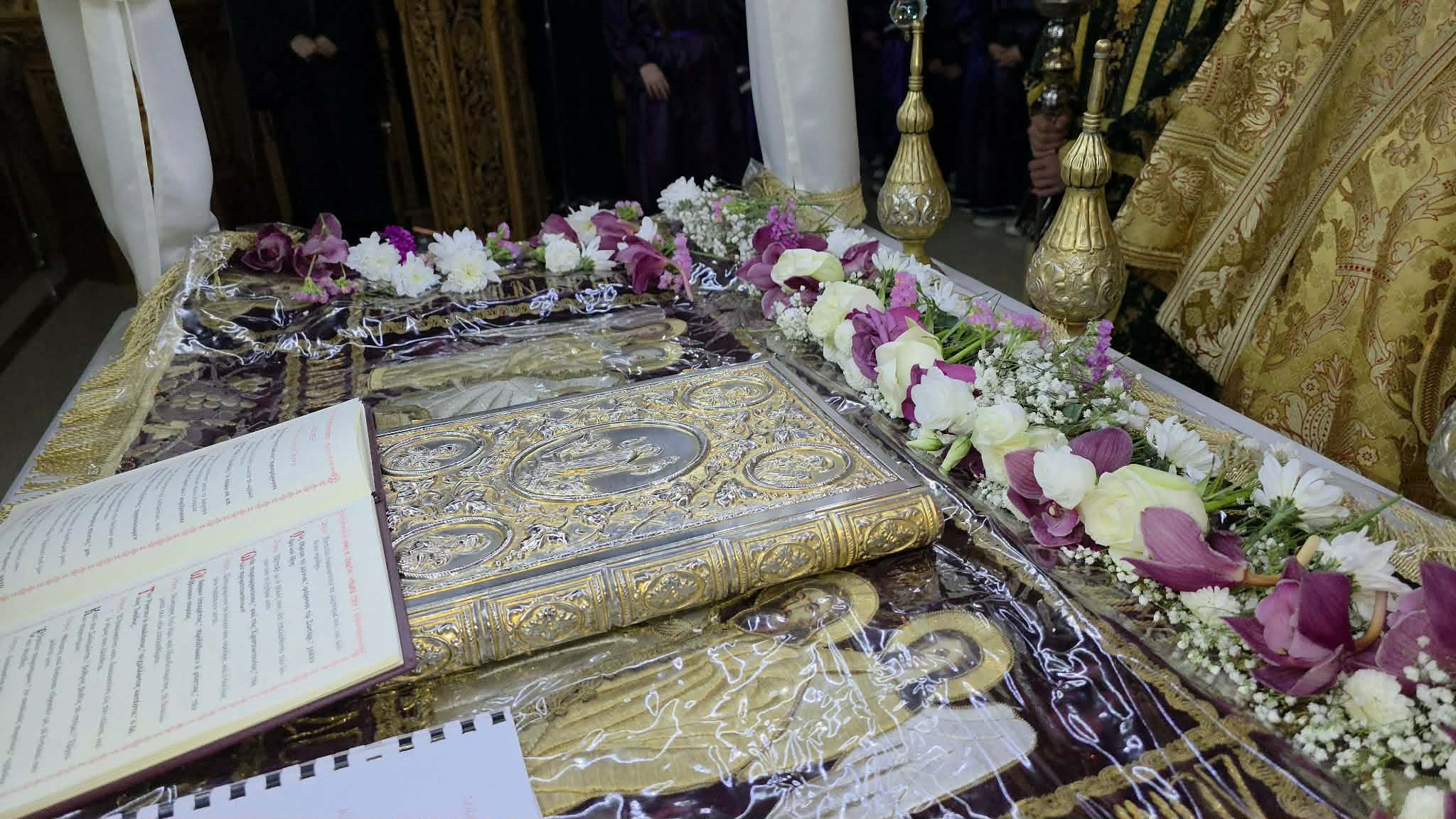 Οι ύμνοι της Μεγάλης Παρασκευής αντήχησαν στον ναό, μεταφέροντας το ανάλογο μήνυμα, ενώ οι πιστοί, εμφανώς συγκινημένοι, παρακολουθούσαν με προσοχή και συμμετείχαν διακριτικά στην ψαλμωδία, ενισχύοντας το αίσθημα της συλλογικής προσευχής.