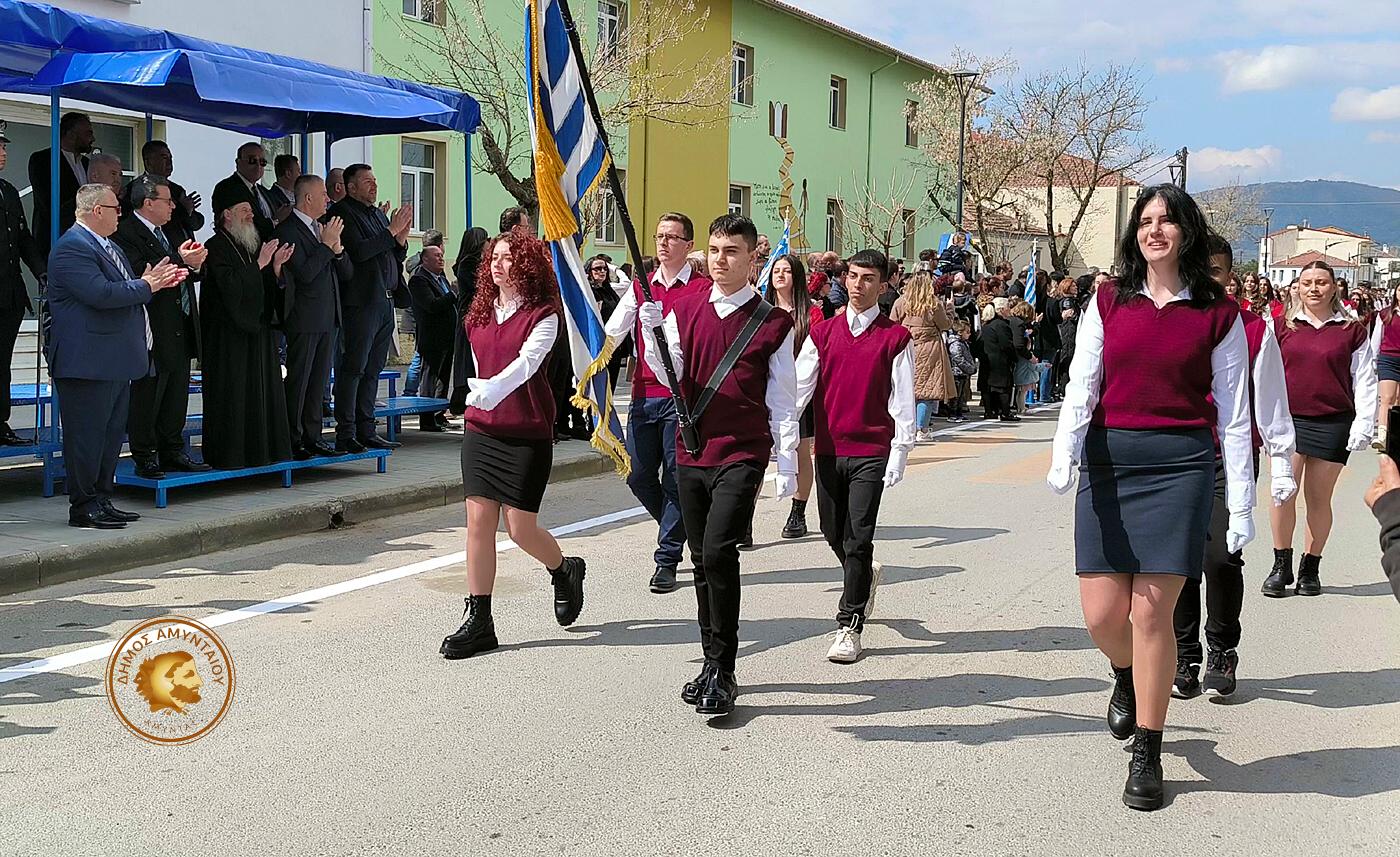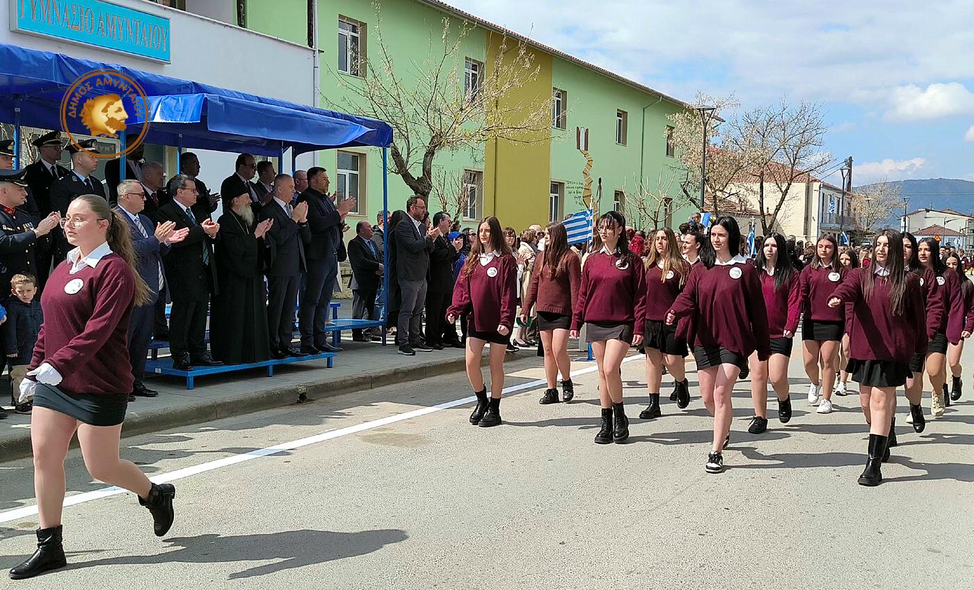 Οι επετειακές εκδηλώσεις της Εθνικής Παλιγγενεσίας του 1821, κορυφώθηκαν με την παρέλαση μαθητών των σχολείων Α/βάθμιας και Β/θμιας εκπαίδευσης και Συλλόγων του δήμου Αμυνταίου και ολοκληρώθηκαν με την δεξίωση που παρέθεσε ο Δήμαρχος και το Δημοτικό Συμβούλιο, στη Λέσχη Αξιωματικών Φρουράς Αμυνταίου.