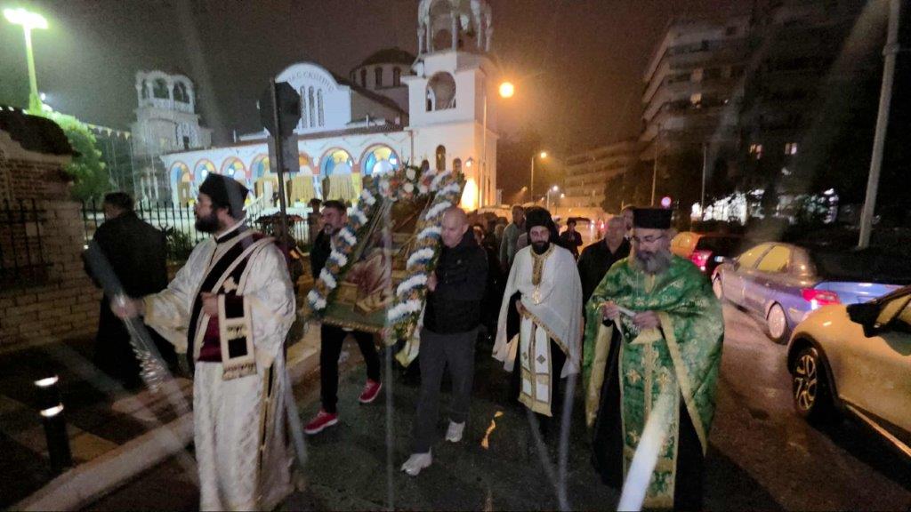 Αρχικά τελέστηκε η ακολουθία του Εσπερινού στο υπόγειο παρεκκλήσιο, όπου πραγματοποιήθηκε και η αρτοκλασία, ενώ στη συνέχεια οι πιστοί λιτάνευσαν την ιερή εικόνα του Αγίου από τον κάτω προς τον άνω Ιερό Ναό, υπό βροχή, όπου και συνεχίστηκε η αγρυπνία με την ακολουθία του Όρθρου και την τέλεση της Θείας Λειτουργίας.