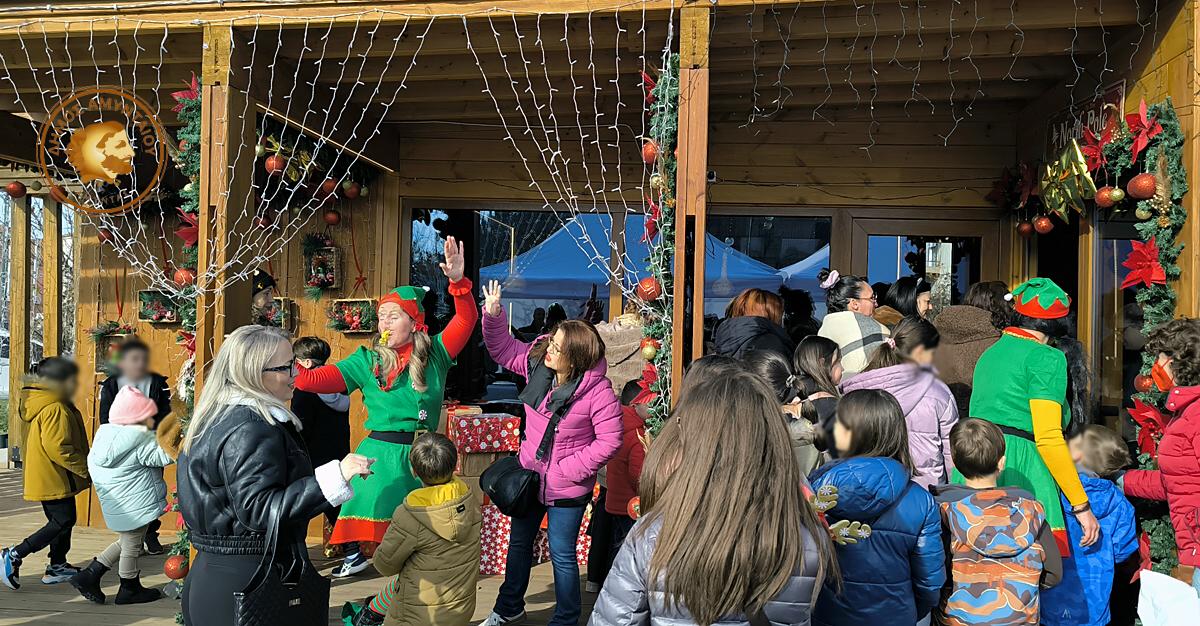 Τα παιδιά είχαν επίσης την ευκαιρία να απολαύσουν ζεστή σοκολάτα, προσφορά των «ξωτικών», σε ένα σκηνικό που θύμιζε παραμύθι και γέμισε τον χώρο με χαμόγελα, ενθουσιασμό και γιορτινή διάθεση.
