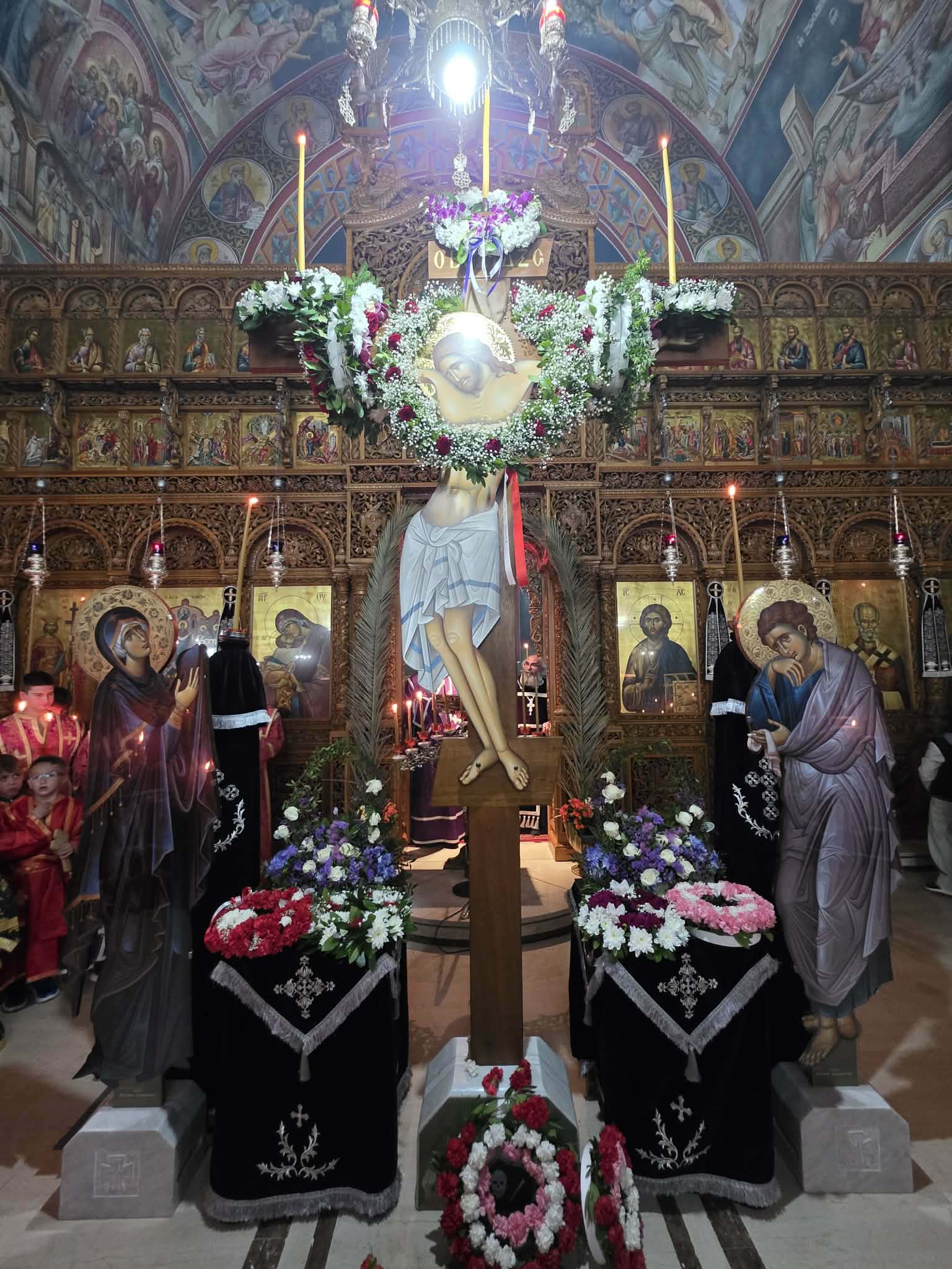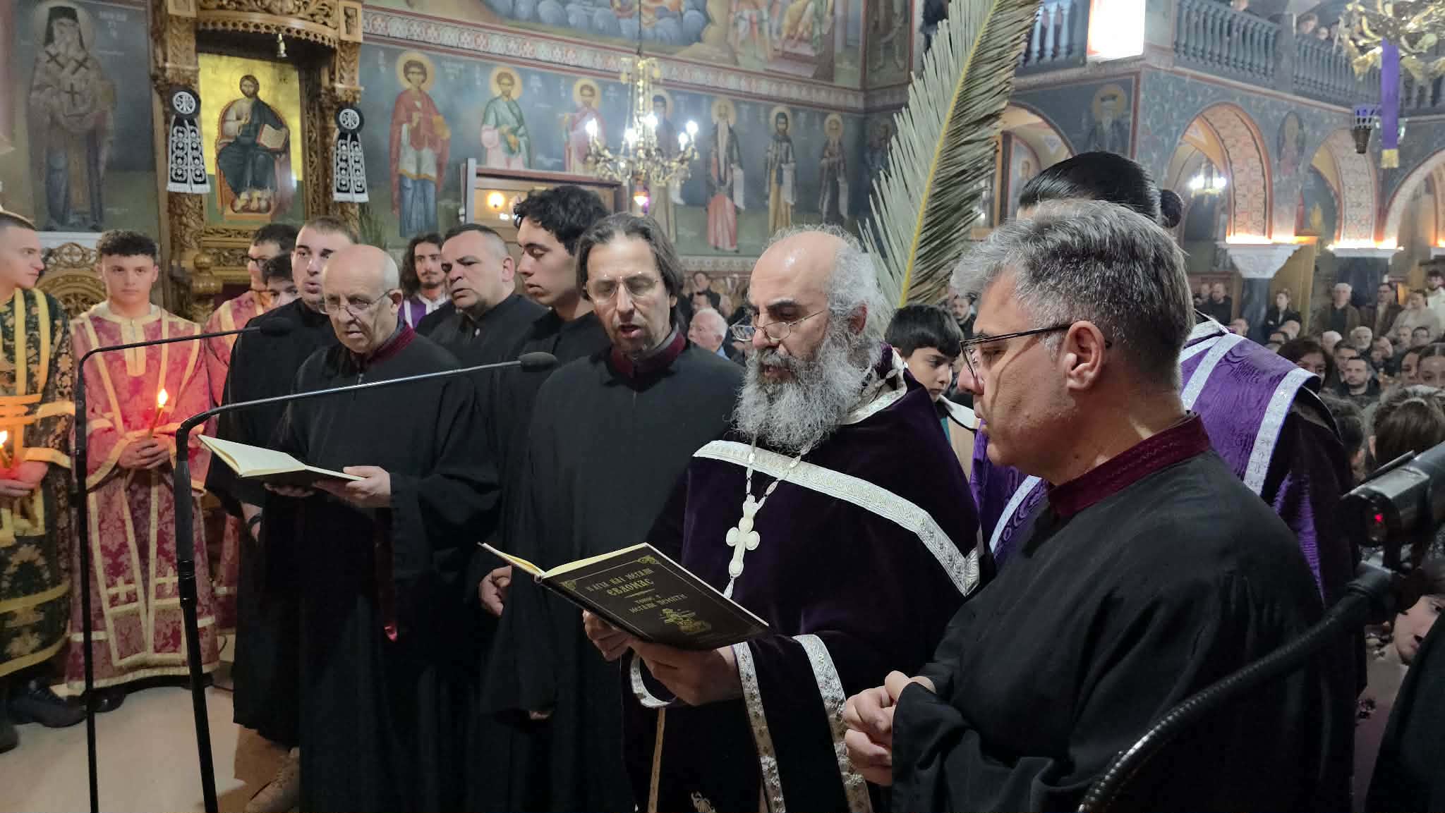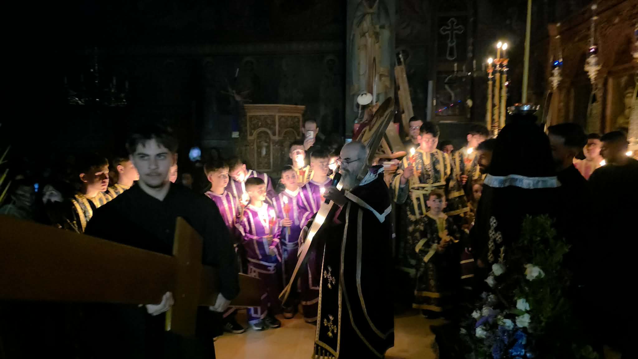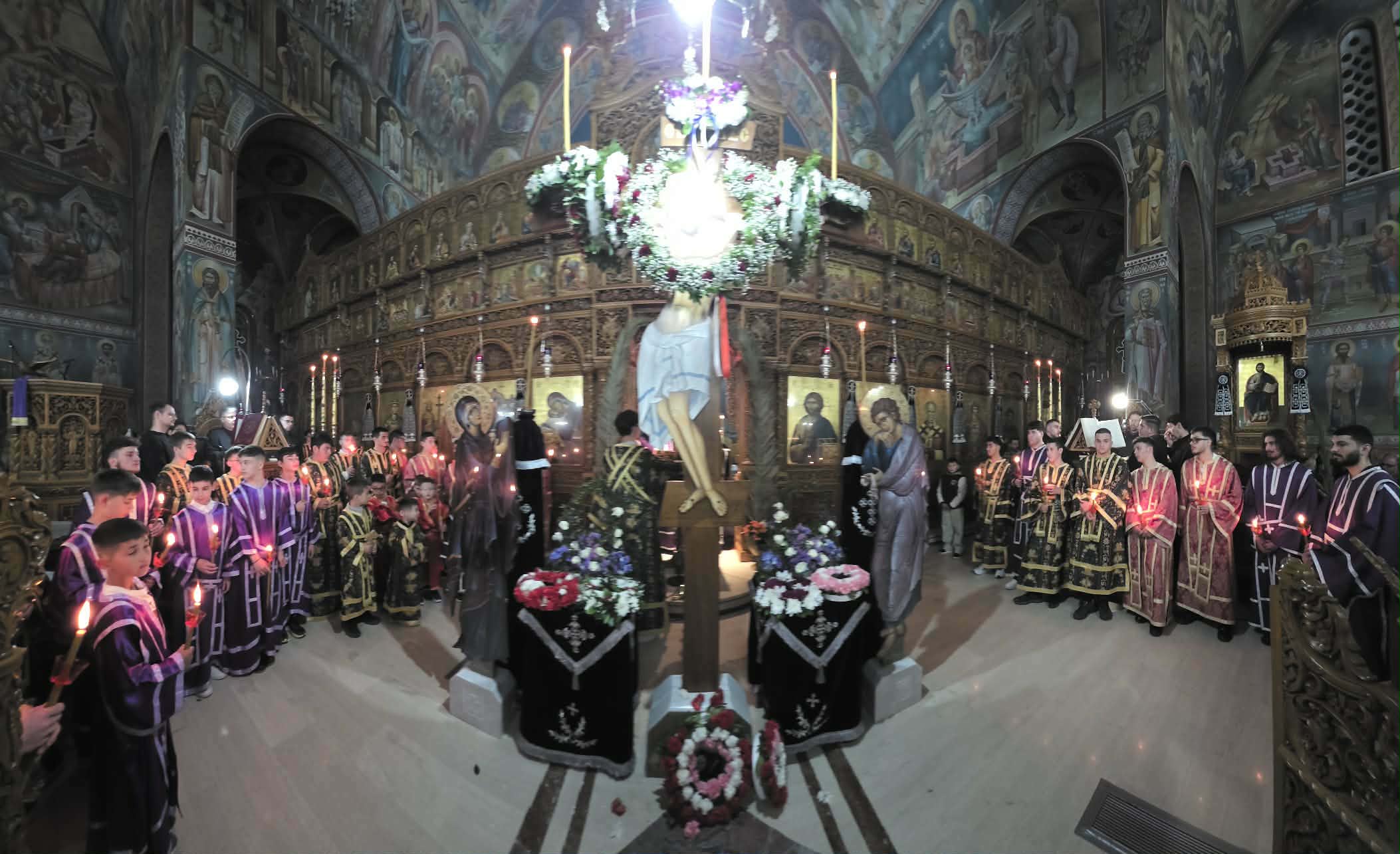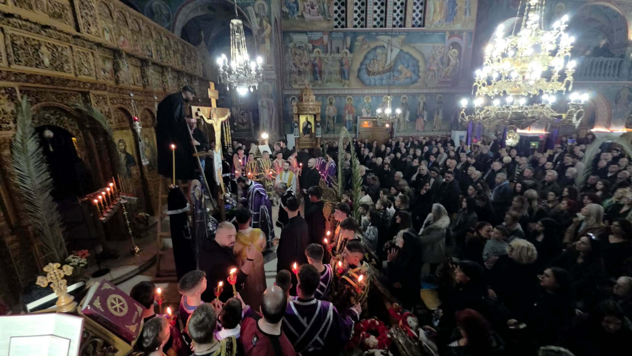 Στιγμές κατάνυξης και προσευχής στον κατάμεστο από πιστούς Ιερό Ναό Αγίας Σκέπης Πτολεμαΐδας την Μεγάλη Πέμπτη. Οι πιστοί με συγκίνηση ακούν τους ψαλμούς της ημέρας, ιδιαιτέρως δε το “Σήμερον κρεμάται επί ξύλου …” και τους Μακαρισμούς του Κυρίου.