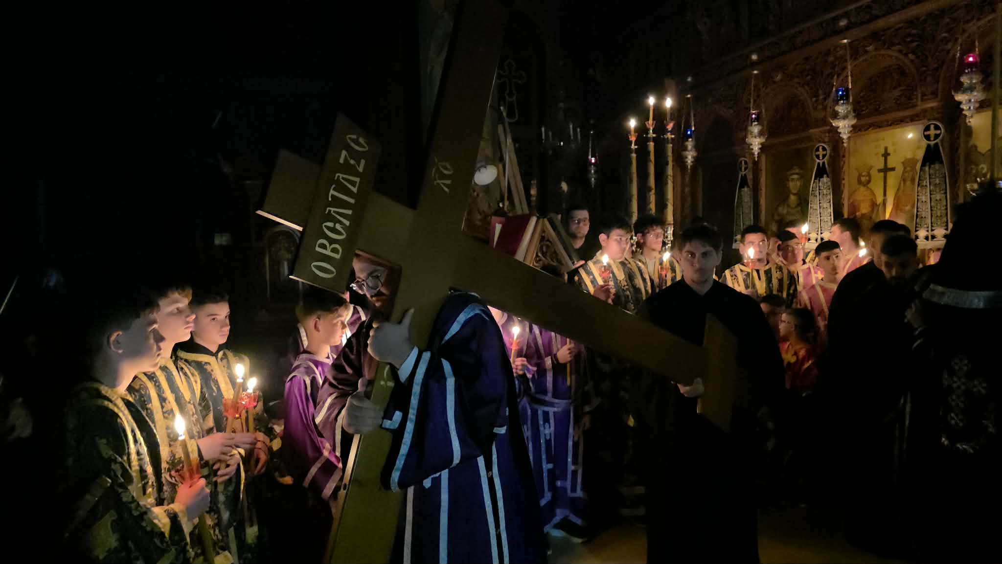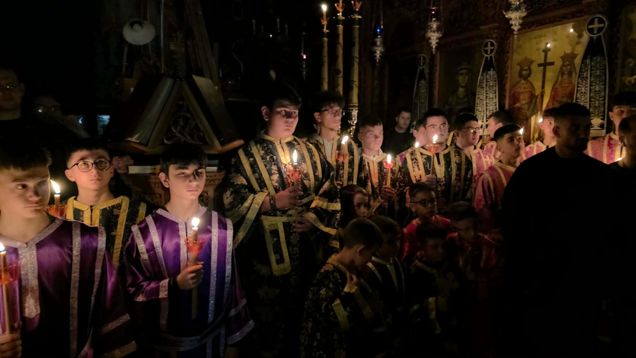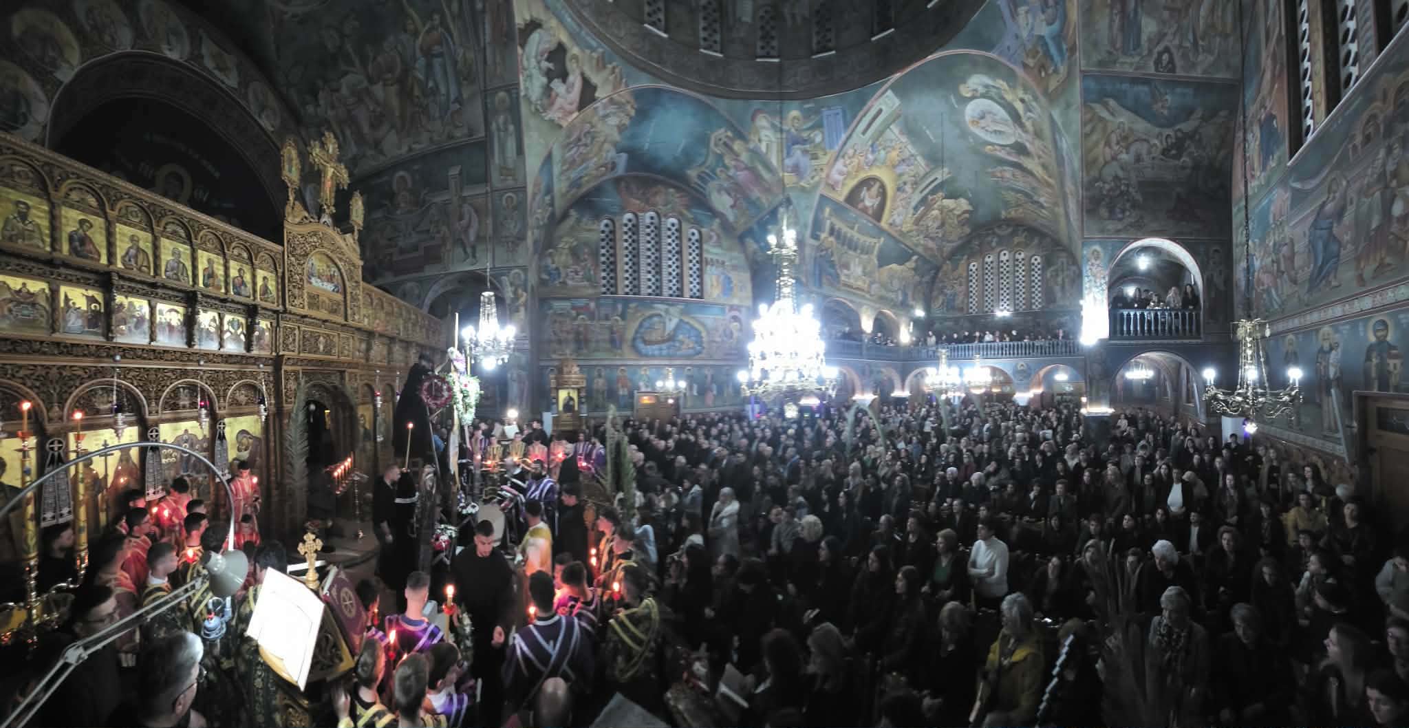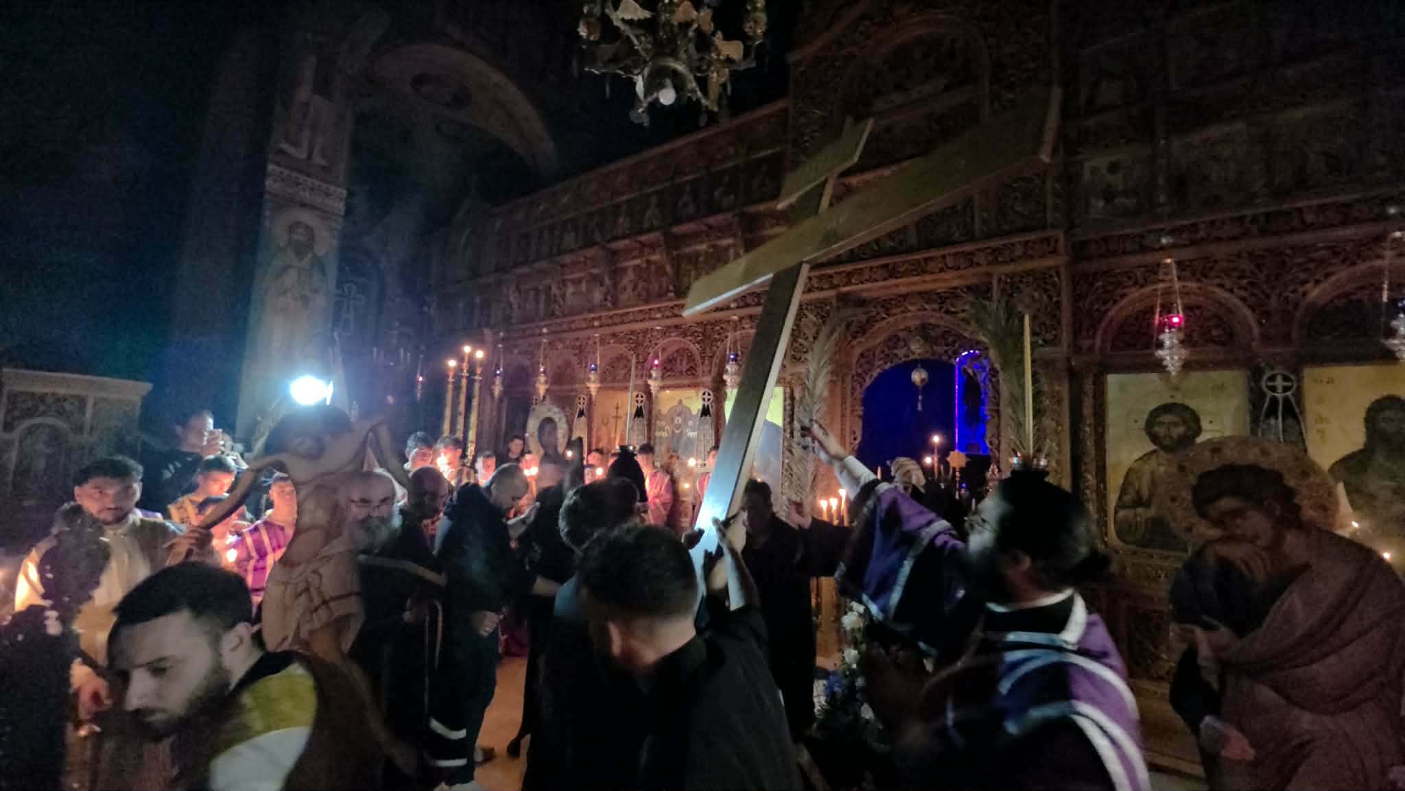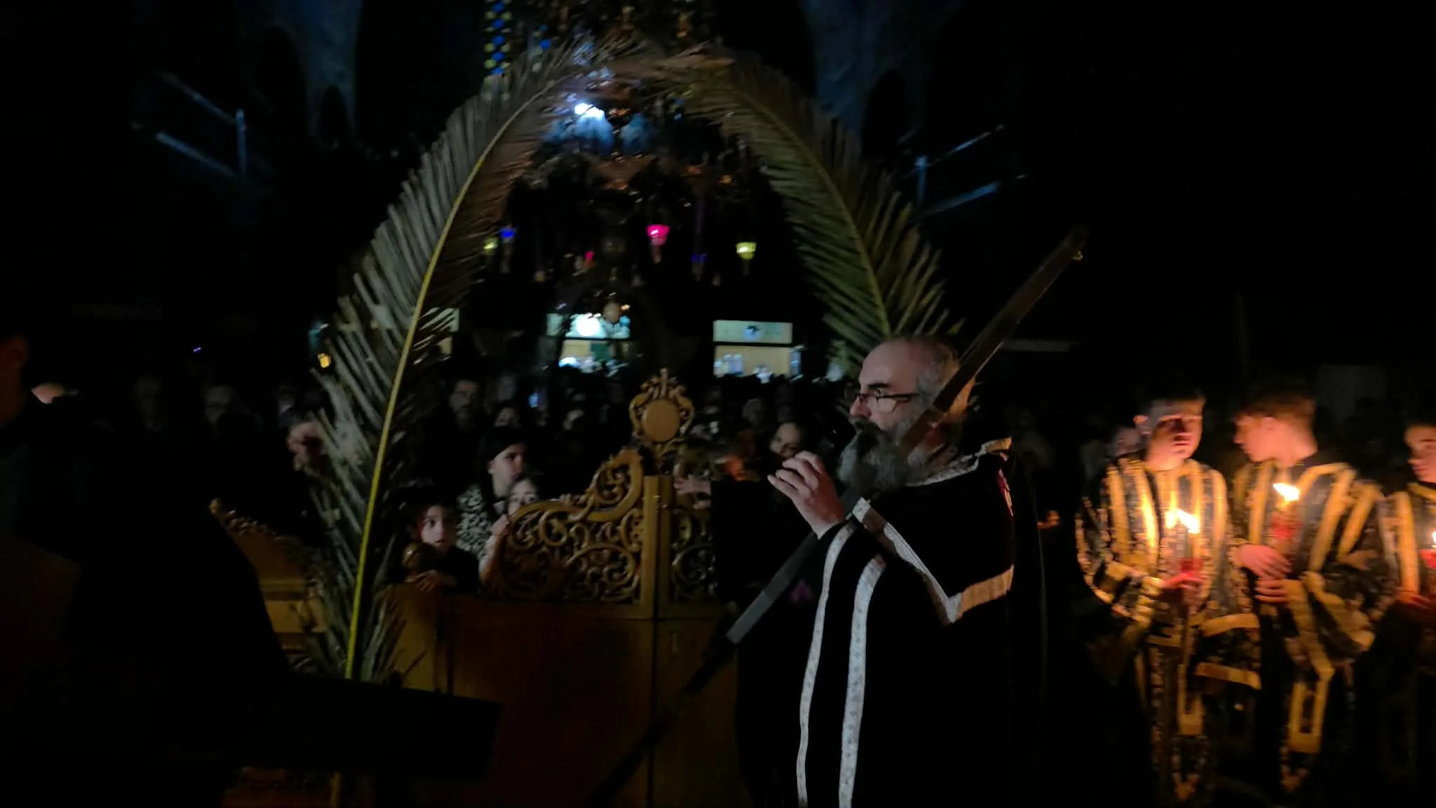 Στιγμές κατάνυξης και προσευχής στον κατάμεστο από πιστούς Ιερό Ναό Αγίας Σκέπης Πτολεμαΐδας την Μεγάλη Πέμπτη. Οι πιστοί με συγκίνηση ακούν τους ψαλμούς της ημέρας, ιδιαιτέρως δε το “Σήμερον κρεμάται επί ξύλου …” και τους Μακαρισμούς του Κυρίου.