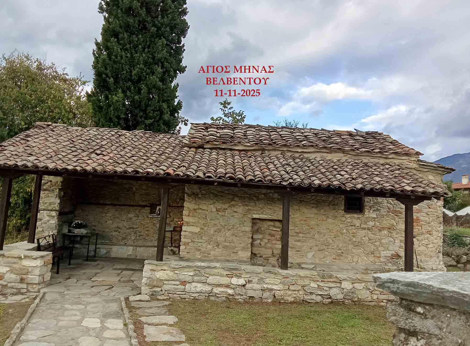 Δεν (πρέπει να) το ξεχνάμε. Από το μικρό, ιστορικό Εξωκλήσι του Αγίου Μηνά στην είσοδο-έξοδο του Βελβεντού, μας κατευοδώνει και μας υποδέχεται, ακατάπαυστα, κάθε φορά, όλο το χρόνο, μέρα και νύχτα, ο Άγιος Μηνάς. Μεγάλη η Χάρη του.