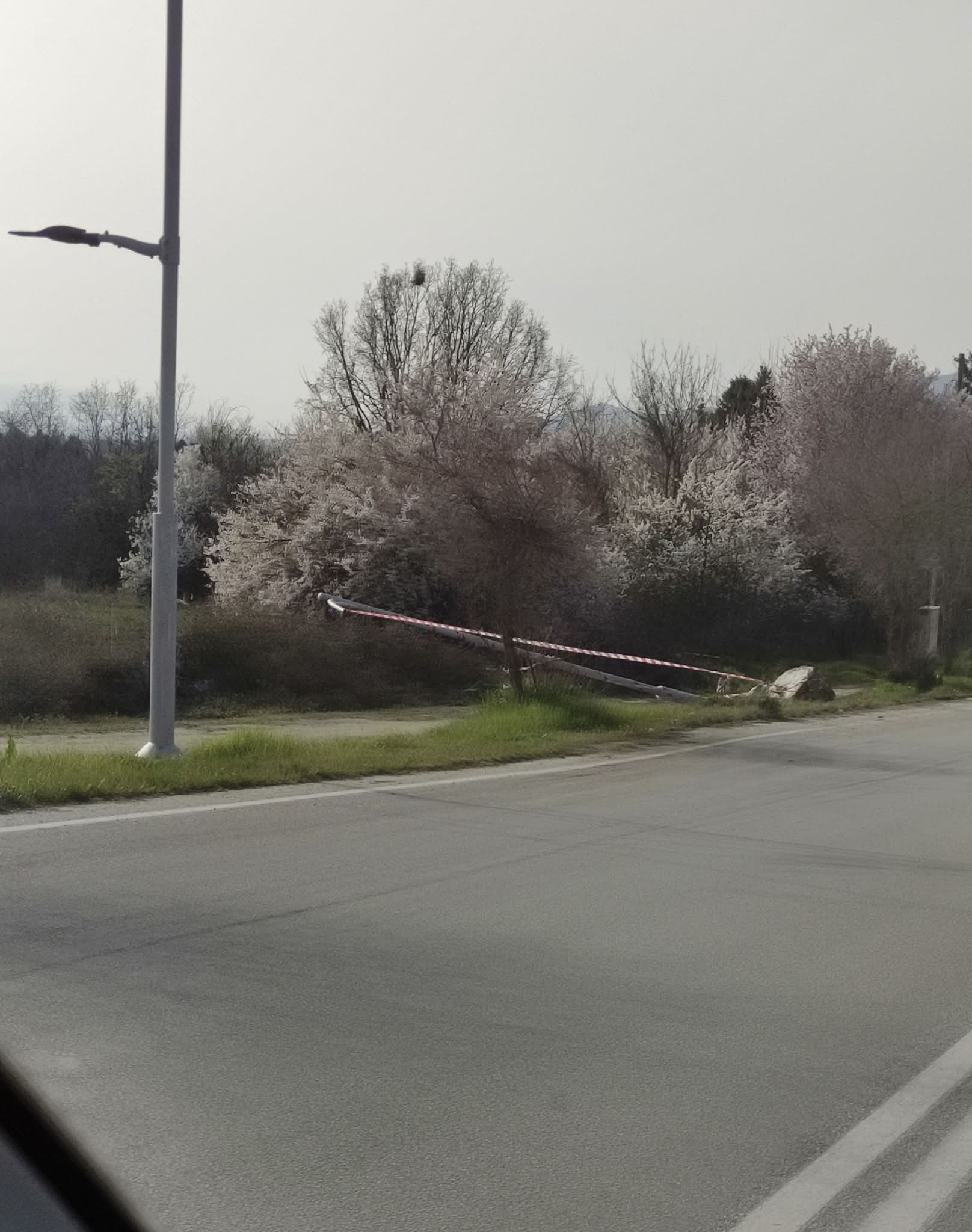 Κολώνα ηλεκτροφωτισμού από το νέο δίκτυο που εγκαταστάθηκε πριν λίγο καιρό στο δρόμο προς Μποδοσάκειο βρέθηκε πεσμένη το πρωί της Παρασκευής. Η διέλευση πεζών από το σημείο χρειάζεται ιδιαίτερη προσοχή.