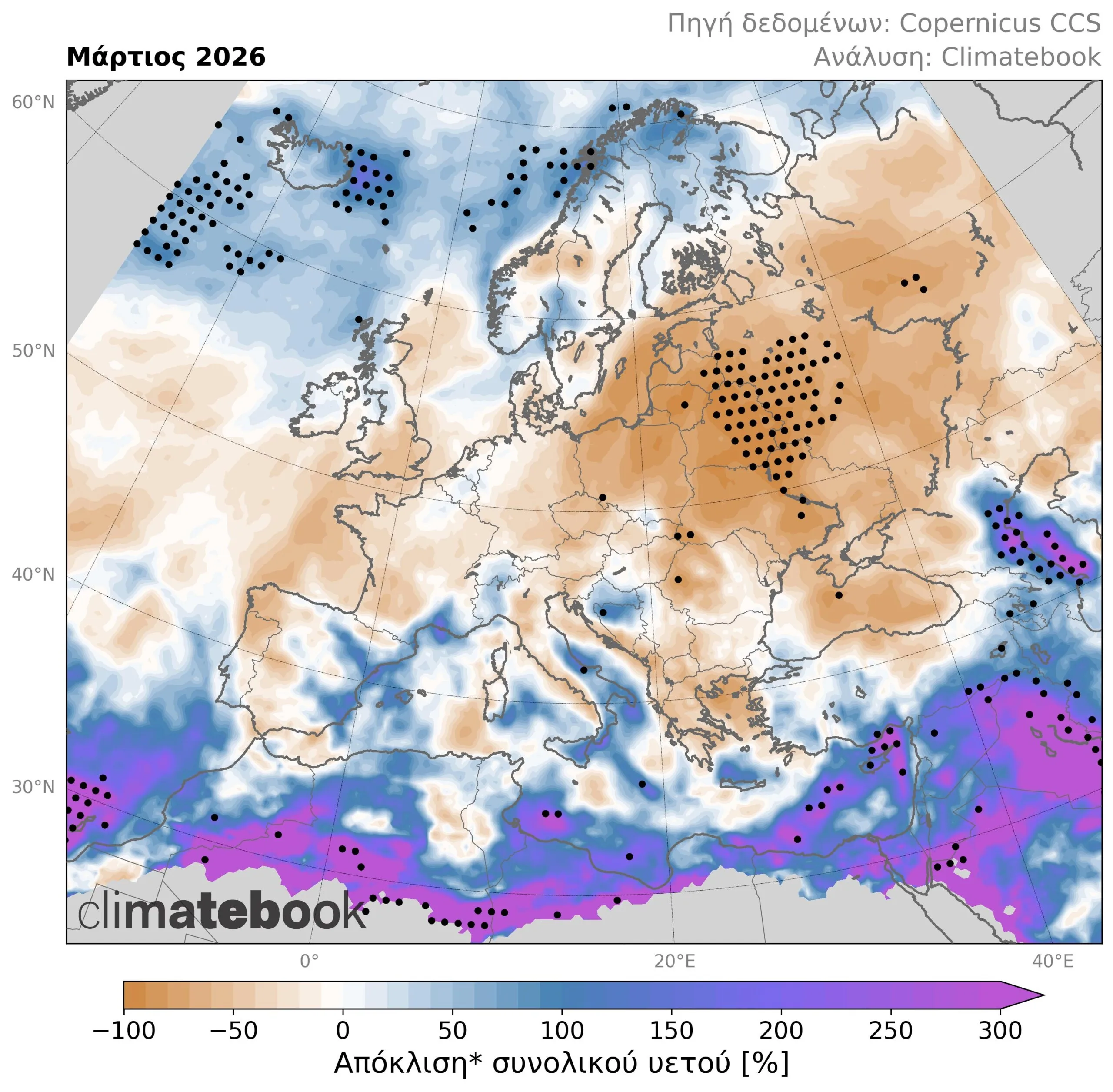 Επιπλέον, μερικά σημαντικά στατιστικά για τον Μάρτιο 2026 για θερμοκρασία και υετό: