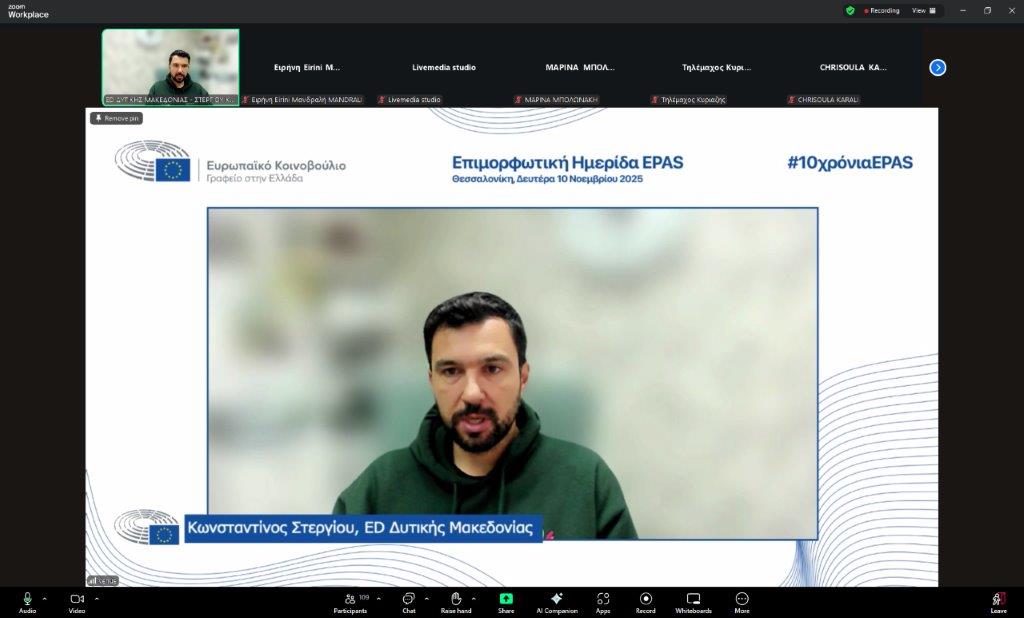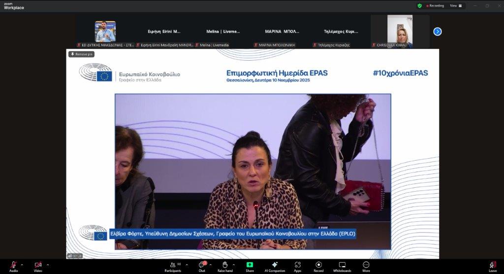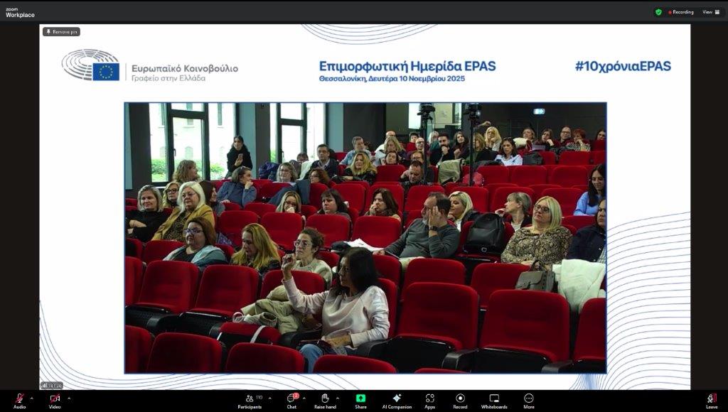 Το Πρόγραμμα “Σχολεία Πρέσβεις του Ευρωπαϊκού Κοινοβουλίου” γιόρτασε φέτος 10 χρόνια, πραγματοποιώντας μια ημερίδα με σκοπό την επιμόρφωση των καθηγητών του Προγράμματος Σχολεία Πρέσβεις (EPAS), την Δευτέρα 10 Νοεμβρίου 2025 στην Θεσσαλονίκη.