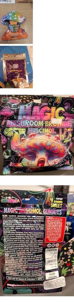 Καλούνται οι καταναλωτές που έχουν προμηθευτεί παρόμοια προϊόντα (ενδεικτικές φωτογραφίες κάτωθι), τα οποία αναφέρουν στην επισήμανσή τους την παρουσία μουσκιμόλης ή Amanita muscaria ή διατίθενται με ονομασίες όπως «Amanita Gummies», «Mushroom Muscimol Gummies» “Magic Maushroom” κ.λπ., να μην τα καταναλώσουν.