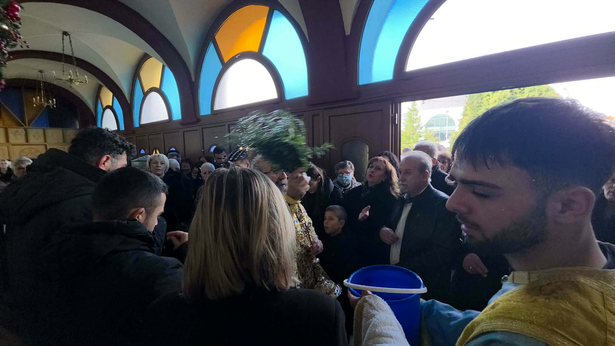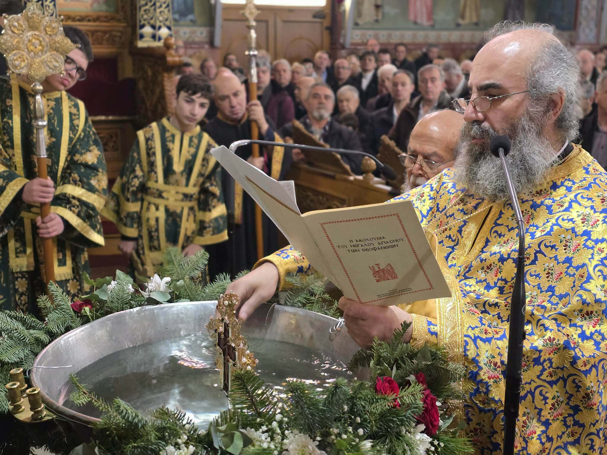 Ο Μέγας Αγιασμός και η κατάδυση του Τιμίου Σταυρού , πραγματοποιήθηκαν εντός της Εκκλησίας στην κολυμβήθρα, όπου ακούστηκε το :” Εν Ιορδάνη βαπτιζομένου σου Κύριε η της Τριάδος εφανερώθη προσκύνησις”. Στο πέρας της Ιεράς Ακολουθίας οι Ιερείς άγιασαν όλους τους πιστούς, οι οποίοι πήραν μαζί τους Αγιασμό για να ραντίσουν τα σπίτια τους και να τον φυλάξουν στο εικονοστάσιό τους.