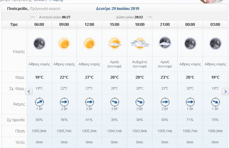 Ο καιρός σήμερα Δρυτέρα 29 Ιουλίου