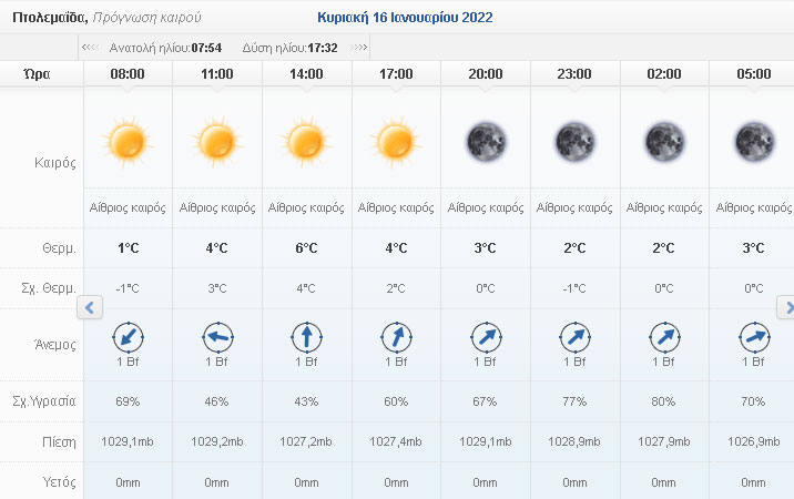 Ο καιρός σήμερα Κυριακή 16/1
