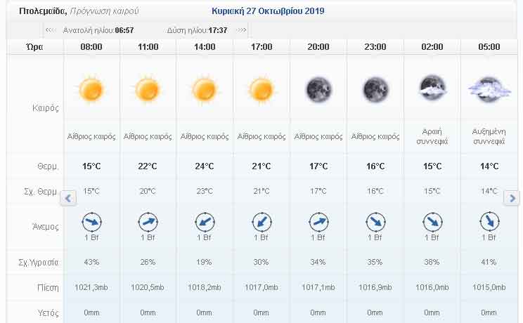 Ο καιρός σήμερα Κυριακή 27 Οκτωβρίου