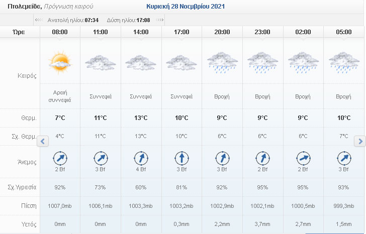 Ο καιρός σήμερα Κυριακή 28/11