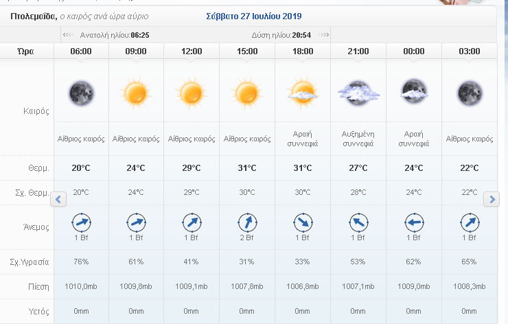 Ο καιρός σήμερα Σάββατο 27 Ιουλίου