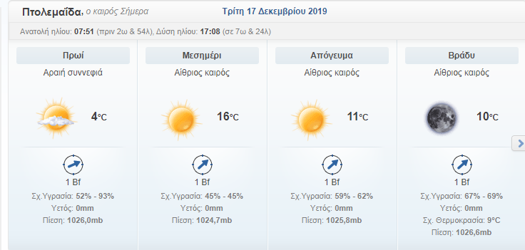 Ο καιρός σήμερα Τρίτη 17 Δεκεμβρίου