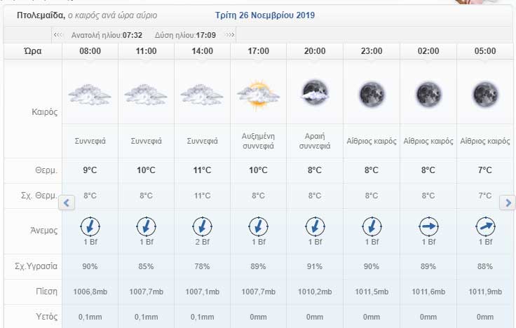 Ο καιρός σήμερα Τρίτη 26 Νοεμβρίου