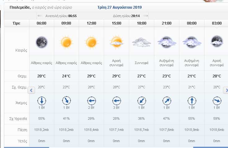 Ο καιρός σήμερα Τρίτη 27 Αυγούστου