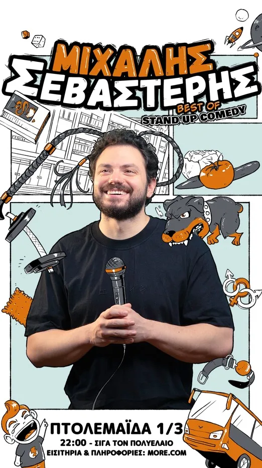 Την Κυριακή 1 Μαρτίου η Πτολεμαΐδα υποδέχεται τον Μιχάλη Σεβαστέρη για μια μοναδική παράσταση stand up comedy στο καφέ «Σιγά τον Πολυέλαιο» και ώρα 22:00.
