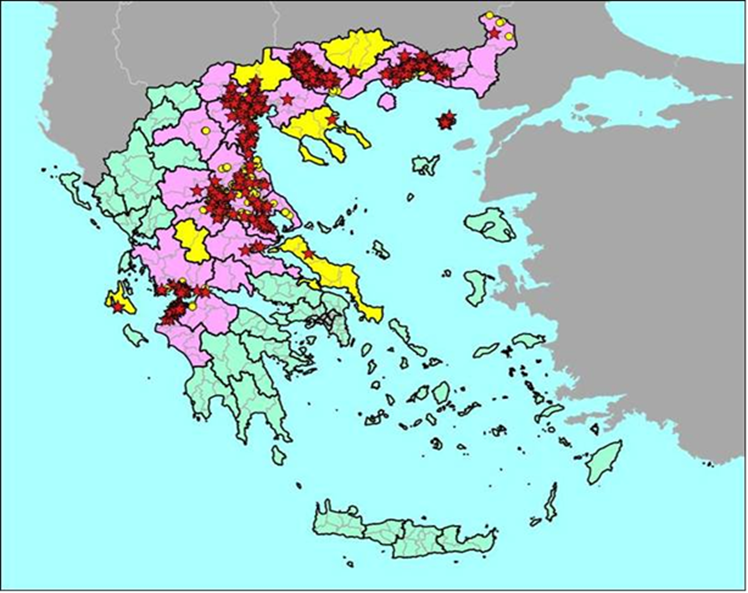 - Στις απαγορευμένες ζώνες (εικόνα 2) δεν επιτρέπονται μετακινήσεις παρά μόνο για άμεση σφαγή στο πλησιέστερο κατά το δυνατό σφαγείο, κατόπιν αρνητικού αποτελέσματος test pcr στο σίελο.