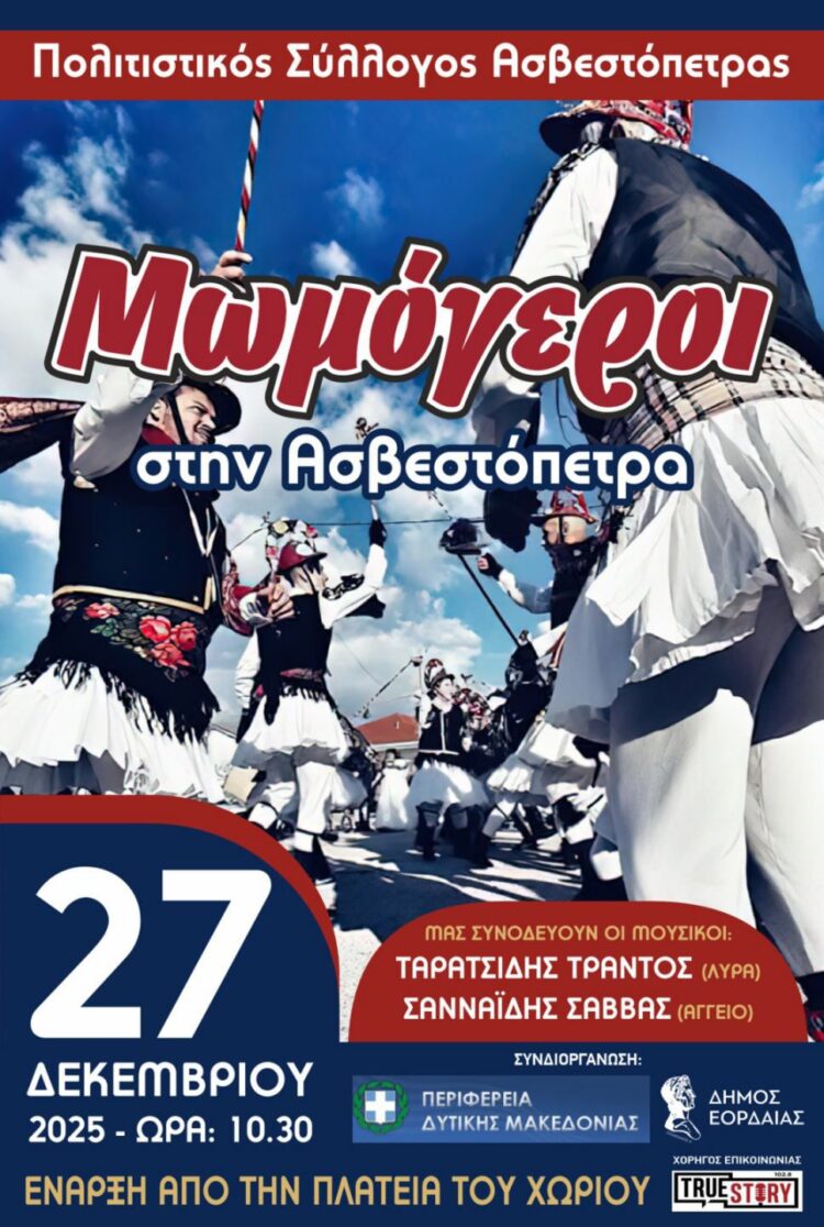 Ο Πολιτιστικός Σύλλογος Ασβεστόπετρας αναβιώνει το έθιμο των Μωμόγερων το Σάββατο 27 Δεκεμβρίου και ώρα 10:30 στην Πλατεία του χωριού.