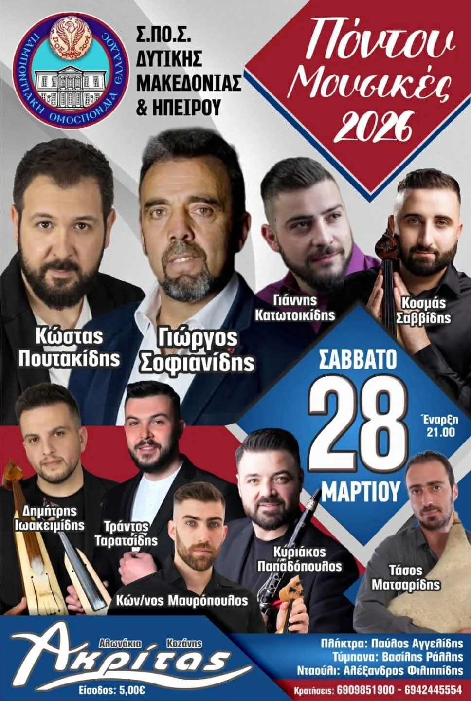 Το Σάββατο 28 Μαρτίου και ώρα 21.00 στο κέντρο “Ακρίτας” στα Αλωνάκια Κοζάνης, θα πραγματοποιηθεί η εκδήλωση “Μουσικές Πόντου 2026”