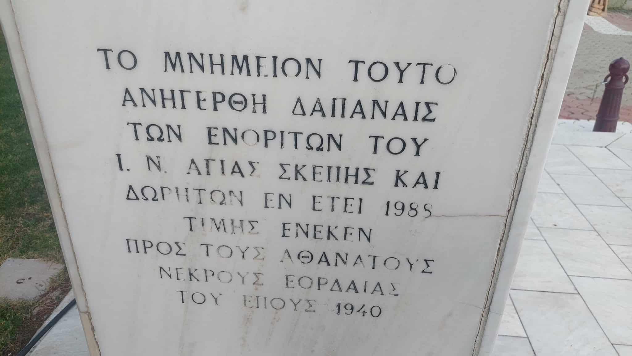 Επιπλέον ο Πατήρ Θεόφιλος Αναφέρθηκε στην τεράστια σημασία του Ηρώου , που βρίσκεται στον εξωτερικό χώρο της Εκκλησίας τονίζοντας ότι δεν είναι ένα Μνημείο Αγνώστου Στρατιώτη , αλλά 165 επωνύμων Στρατιωτών από την Εορδαία , που θυσιάστηκαν υπέρ Πίστεως και Πατρίδος στον πόλεμο του 1940. Ολοκληρώνοντας ο Πατήρ Θεόφιλος κάλεσε όλους να παρευρεθούν στις λατρευτικές εκδηλώσεις , τιμώντας την ΥΠΕΡΑΓΙΑ ΘΡΟΤΌΚΟ και την ΕΘΝΙΚΗ ΕΠΕΤΕΙΟ! Να σημειωθεί ότι προχωρούν οι εργασίες βελτίωσης της εξωτερικής εικόνας του περικαλλούς Ιερού Ναού, που θα τον αναβαθμίσουν λειτουργικά και αισθητικά .