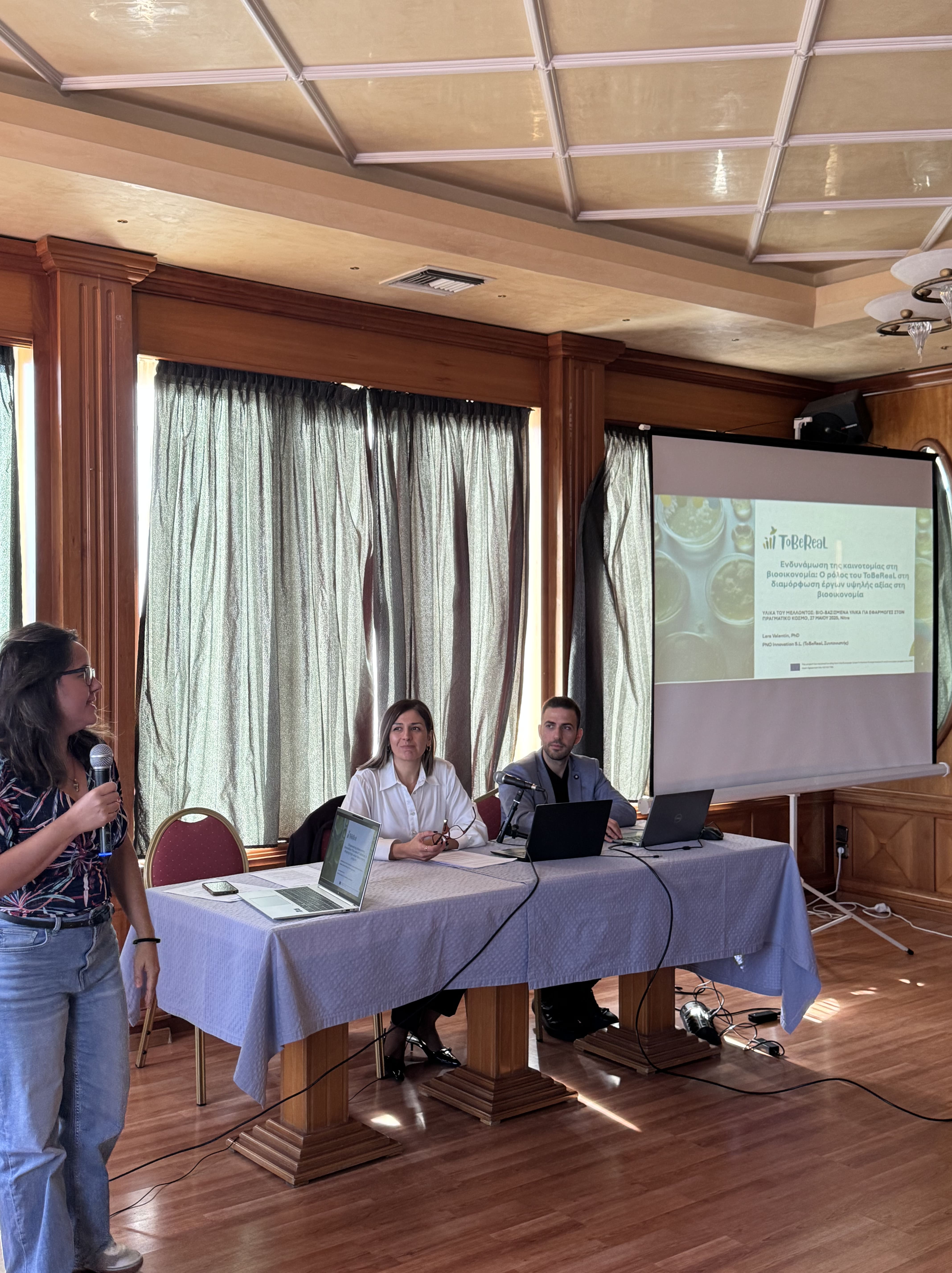 Παράλληλα, στο συνέδριο συμμετείχαν και οι εταίροι του ευρωπαϊκού έργου ToBeReal (Horizon Europe), το οποίο παρέχει τεχνογνωσία και καθοδήγηση σχετικά με διαθέσιμες χρηματοδοτικές ευκαιρίες στον τομέα της βιοοικονομίας. Η Lara Valentin, συντονίστρια του ToBeReal, παρουσίασε το έργο και μοιράστηκε τους τρόπους με τους οποίους κάποιος φορέας μπορεί να επωφεληθεί από τις υπηρεσίες του.