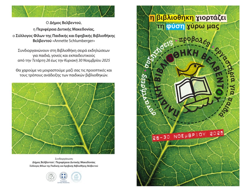 Ένα πλούσιο πρόγραμμα εκδηλώσεων έχει προγραμματιστεί στην παιδική βιβλιοθήκη Βελβεντού τον Νοέμβριο, προσφέροντας δραστηριότητες για παιδιά, γονείς και εκπαιδευτικούς.