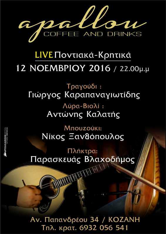 Ποντιακό & Κρητικό ζωντανό πρόγραμμα στο Apallou Coffee and Drinks στην Κοζάνη