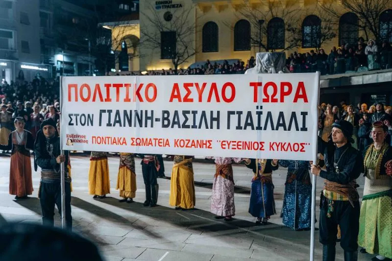 Προς το τέλος της εκδήλωσης, χορευτές άνοιξαν πανό με αίτημα τη χορήγηση πολιτικού ασύλου στον Γιάννη Βασίλη Γιαϊλαλί, εκφράζοντας δημόσια τη στήριξή τους.