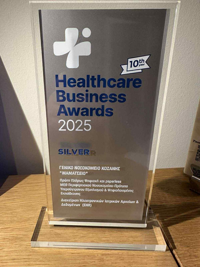 Η Μονάδα Εντατικής Θεραπείας (ΜΕΘ) του Γενικού Νοσοκομείου Κοζάνης “Μαμάτσειο” τιμήθηκε με το Healthcare Business Award 2025, αναγνωρίζοντας την πρωτοποριακή της δράση, ως η πρώτη πλήρως ψηφιακή και paperless ΜΕΘ σε περιφερειακό Νοσοκομείο στην Ελλάδα. Η βράβευση αυτή επιβεβαιώνει την υπεροχή της ΜΕΘ Κοζάνης ως ορόσημο καινοτομίας, ασφάλειας και άριστης παροχής υγειονομικών υπηρεσιών στη Δυτική Μακεδονία, τονίζει η διοίκηση σε ανακοίνωσή της αναφέροντας επίσης: