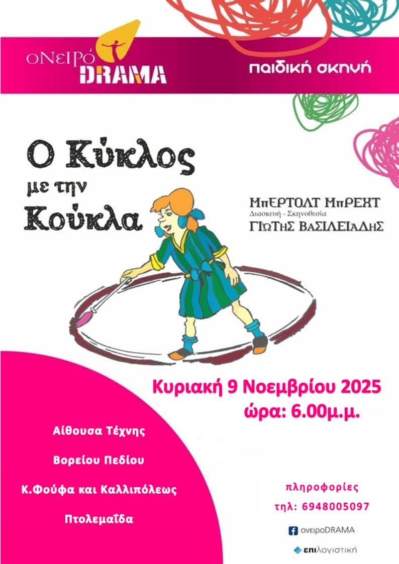 Η θεατρική ομάδα ΟΝΕΙΡΟDRAMA παρουσιάζει τη παιδική παραγωγή «Ο Κύκλος με την Κούκλα», μια τρυφερή και σύγχρονη διασκευή του αριστουργήματος του Μπρεχτ «Ο Κύκλος με την Κιμωλία», ειδικά προσαρμοσμένη για μικρούς θεατές.