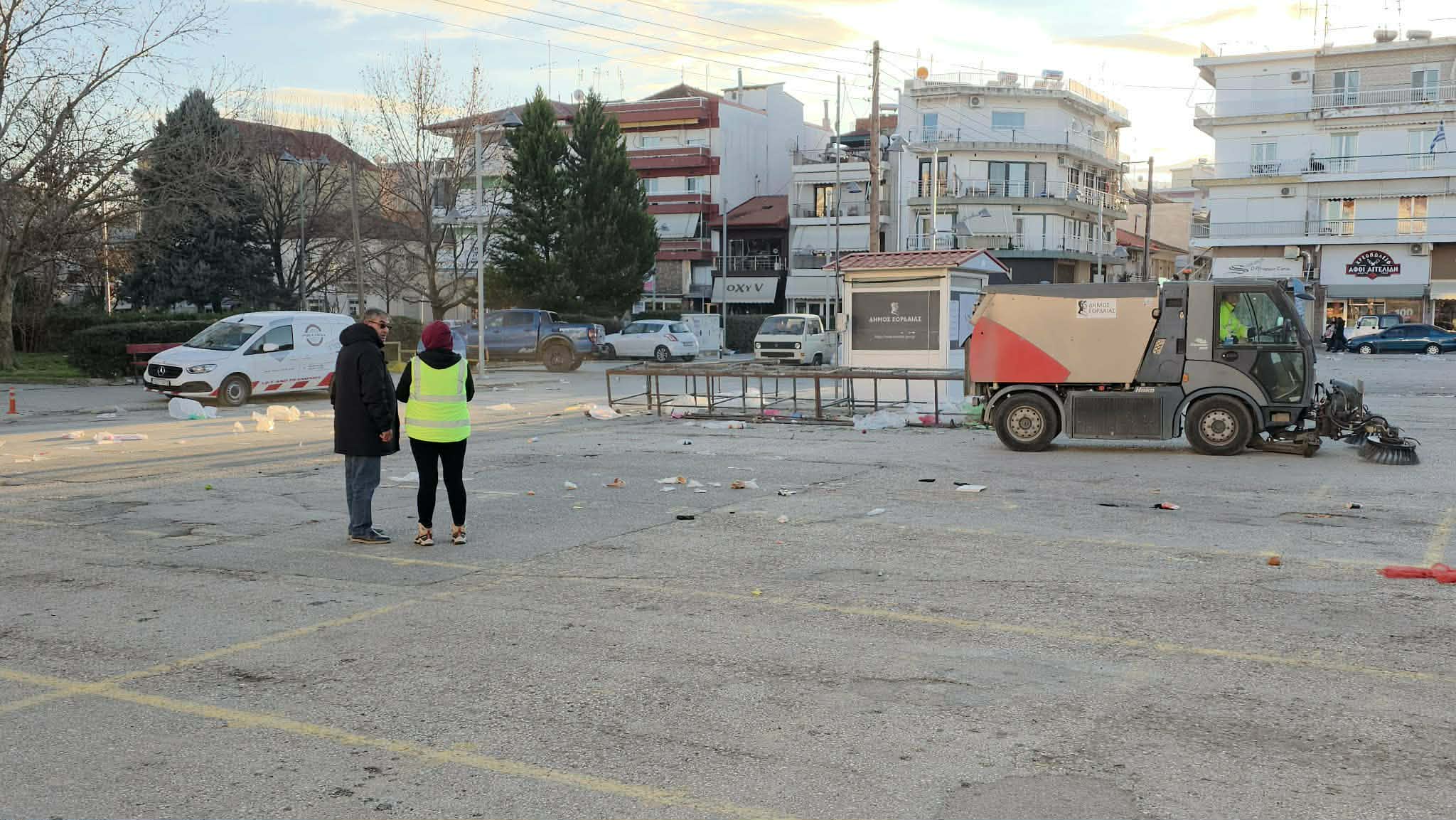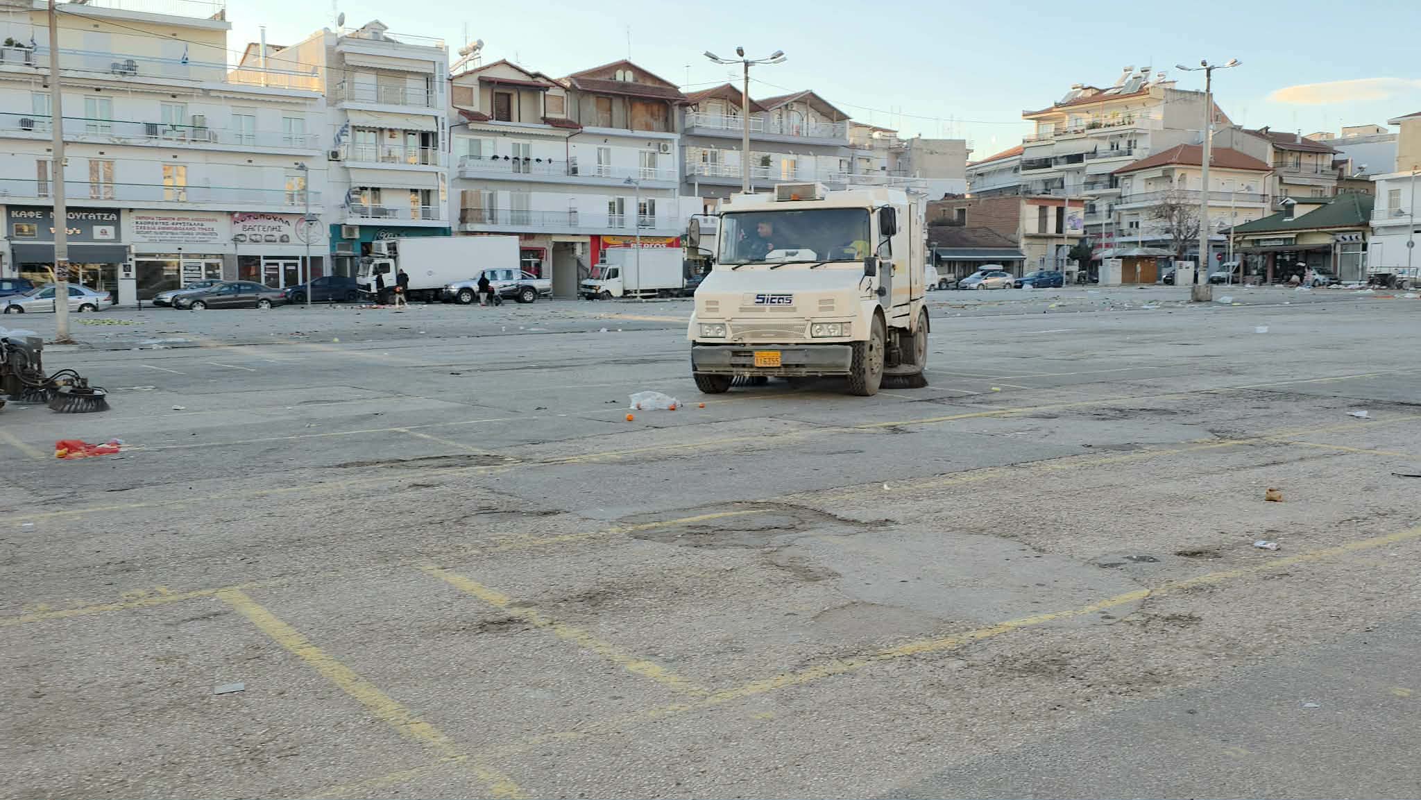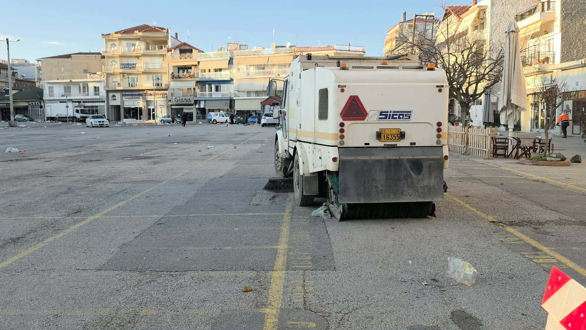 Μετά το πέρας της Λαϊκής Αγοράς, οδοκαθαριστές και χειριστές μηχανημάτων εργάζονται μέσα στο κρύο και τον παγετό, με έναν ξεκάθαρο στόχο: να παραδοθεί ο χώρος καθαρός στους πολίτες. Είναι άνθρωποι που υπηρετούν επαγγέλματα τα οποία δεν γνωρίζουν αργίες, ούτε γιορτές, ούτε Πρωτοχρονιές.