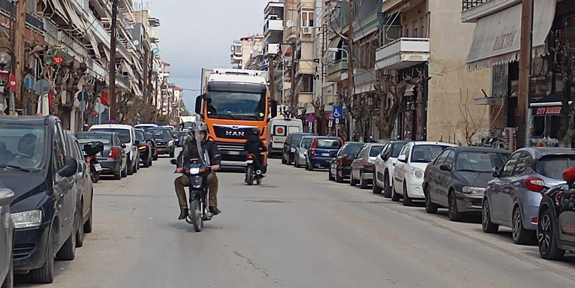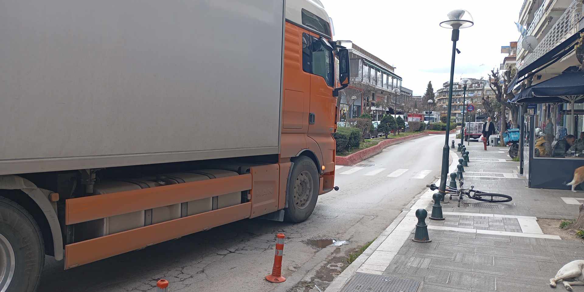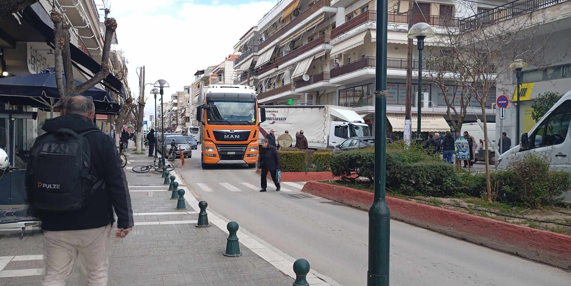 Νταλίκα ήρθε αντιμέτωπη για μια ακόμη φορά με τα “φιδάκια” της οδού 25ης Μαρτίου στο κέντρο της Πτολεμαΐδας.