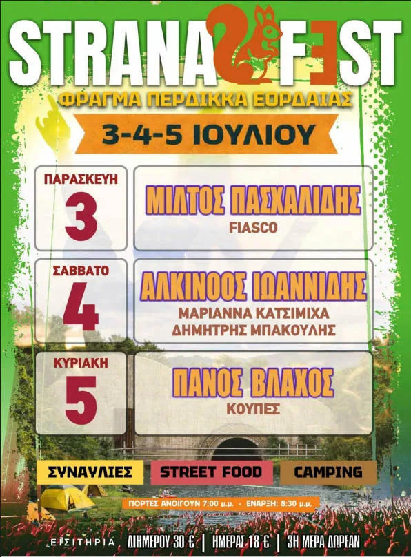 Η συνήθεια που έγινε λατρεία. Με φόντο το γραφικό σκηνικό του Φράγματος Περδίκκα Εορδαίας στην Πτολεμαΐδα, σε μία καταπράσινη έκταση μέσα στο δάσος, στις 3, 4 και 5 Ιουλίου 2026, θα πραγματοποιηθεί για τρίτη συνεχόμενη χρονιά το Φεστιβάλ STRANAFEST, το οποίο θα περιλαμβάνει υπαίθριες δραστηριότητες, workshops και μουσικές συναυλίες.